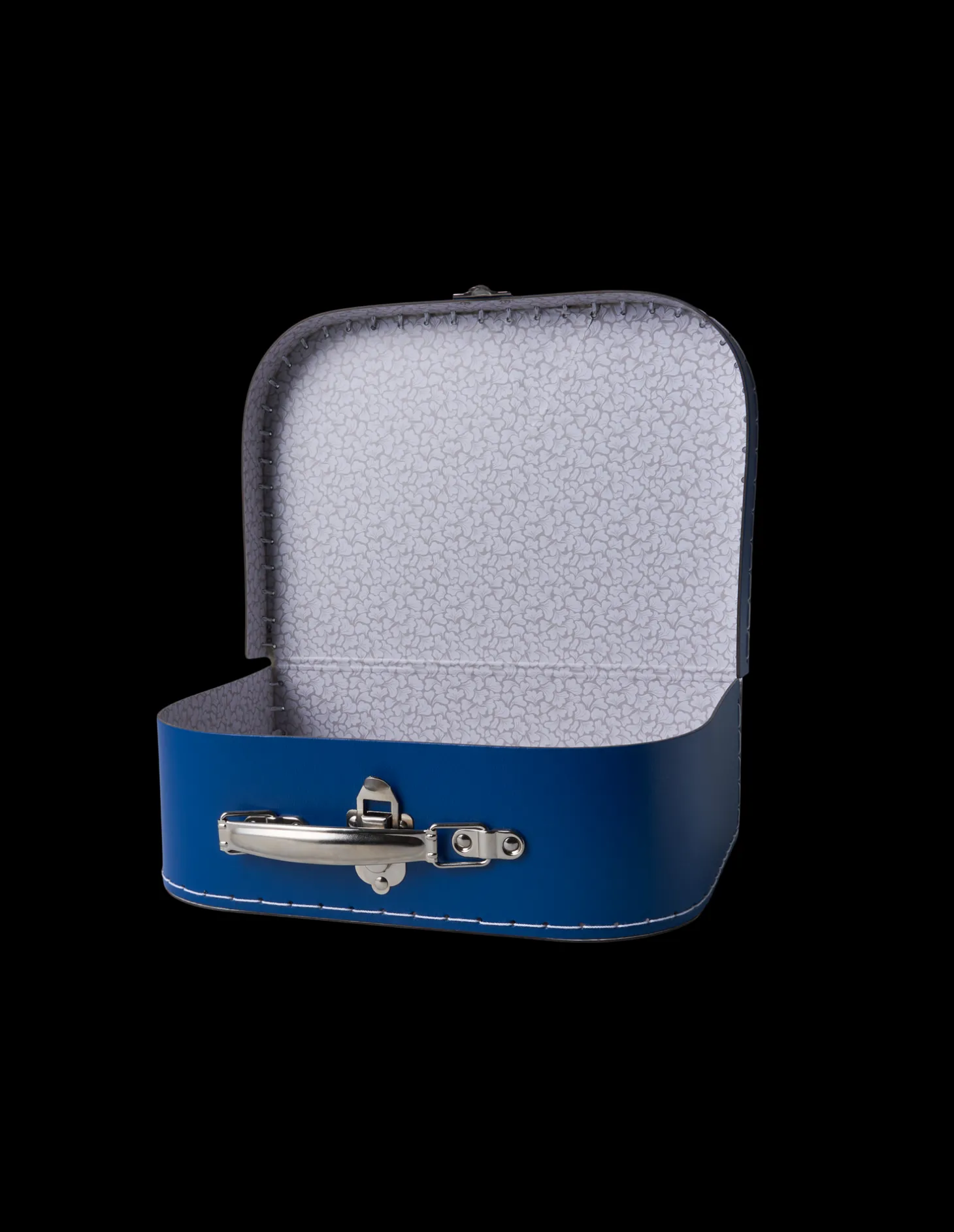 Søstrenes børnekuffert er lavet af pap og måler 25 x 18 x 9 cm. Når søstrenes nevø overnatter hos Anna og Clara, tager han altid sit yndlingslegetøj med sig. For at gøre turen hjem til søstrene lettere har Anna skabt denne skønne kuffert. “Det gør også turen mere behagelig for legetøjet,” smiler nevøen.