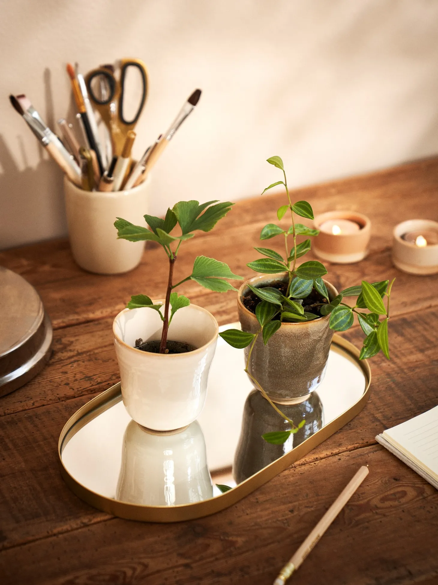 Søstrenes dekorative bakke er lavet af glas og jern og måler 30 x 16 x 1,5 cm. Bakken har en spejlbund, som lader fremviste genstande tage sig særligt godt ud. Den er ideel til borddekorationer, små stearinlys eller til at organisere nipsgenstande på.