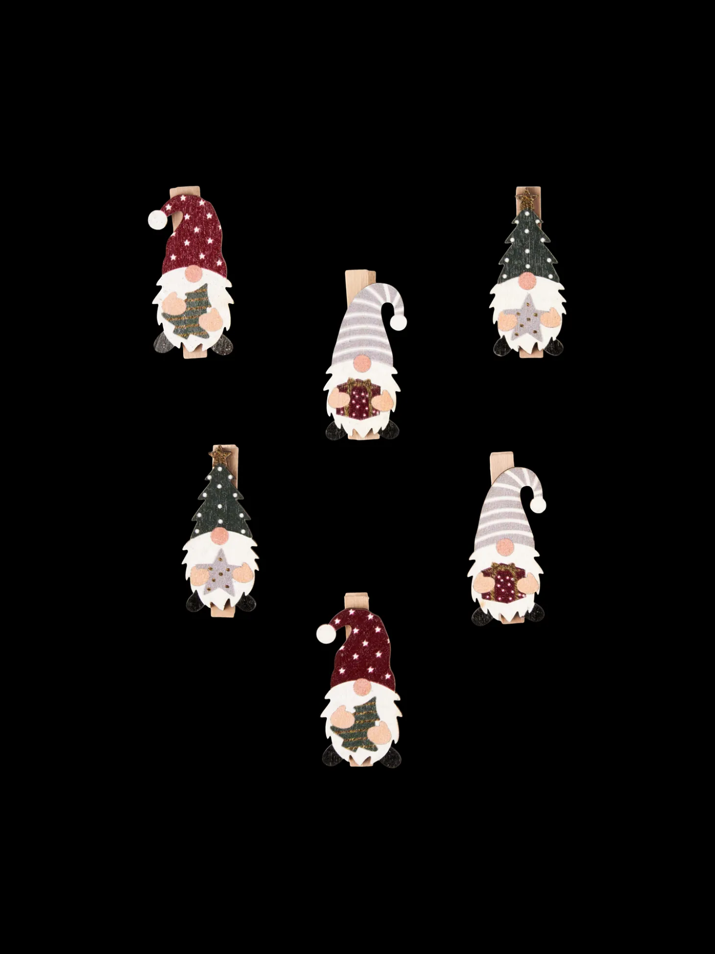 Søstrenes dekorative klemmer med julemænd er lavet af FSC®-certificeret poppeltræ, og en pakke indeholder 6 stk.
