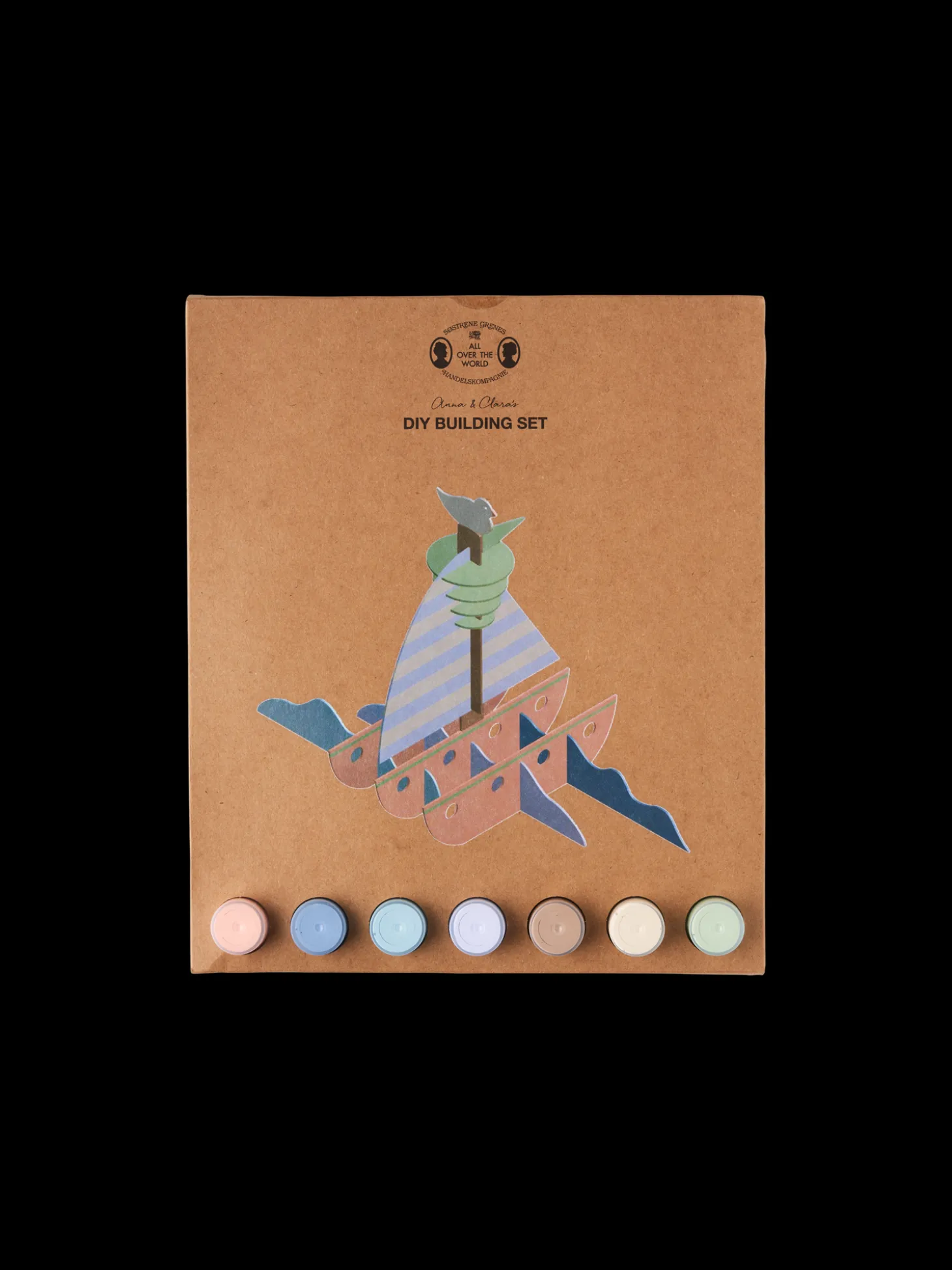 Søstrenes DIY-byggesæt i træ er 100 % FSC®-certificeret. Sættet indeholder træplader med udskårne former til at bygge et herligt skib samt en pensel og 7 stk. vandbaseret akrylmaling.