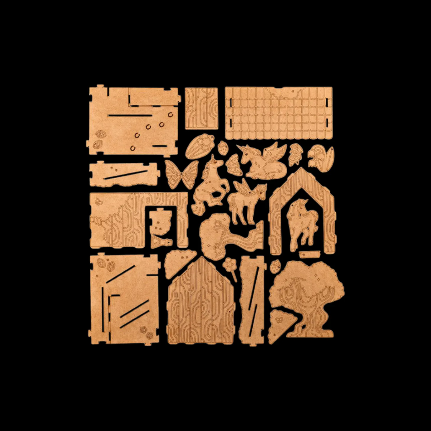 Et finurligt lille DIY-kit fra danske Crateit, produceret på Fyn. Kittet indeholder 28 figurer og dele lavet af HDF. Figurerne er ikke malede, så de kære små kan dekorere dem, som de vil, enten med maling eller tusch.
