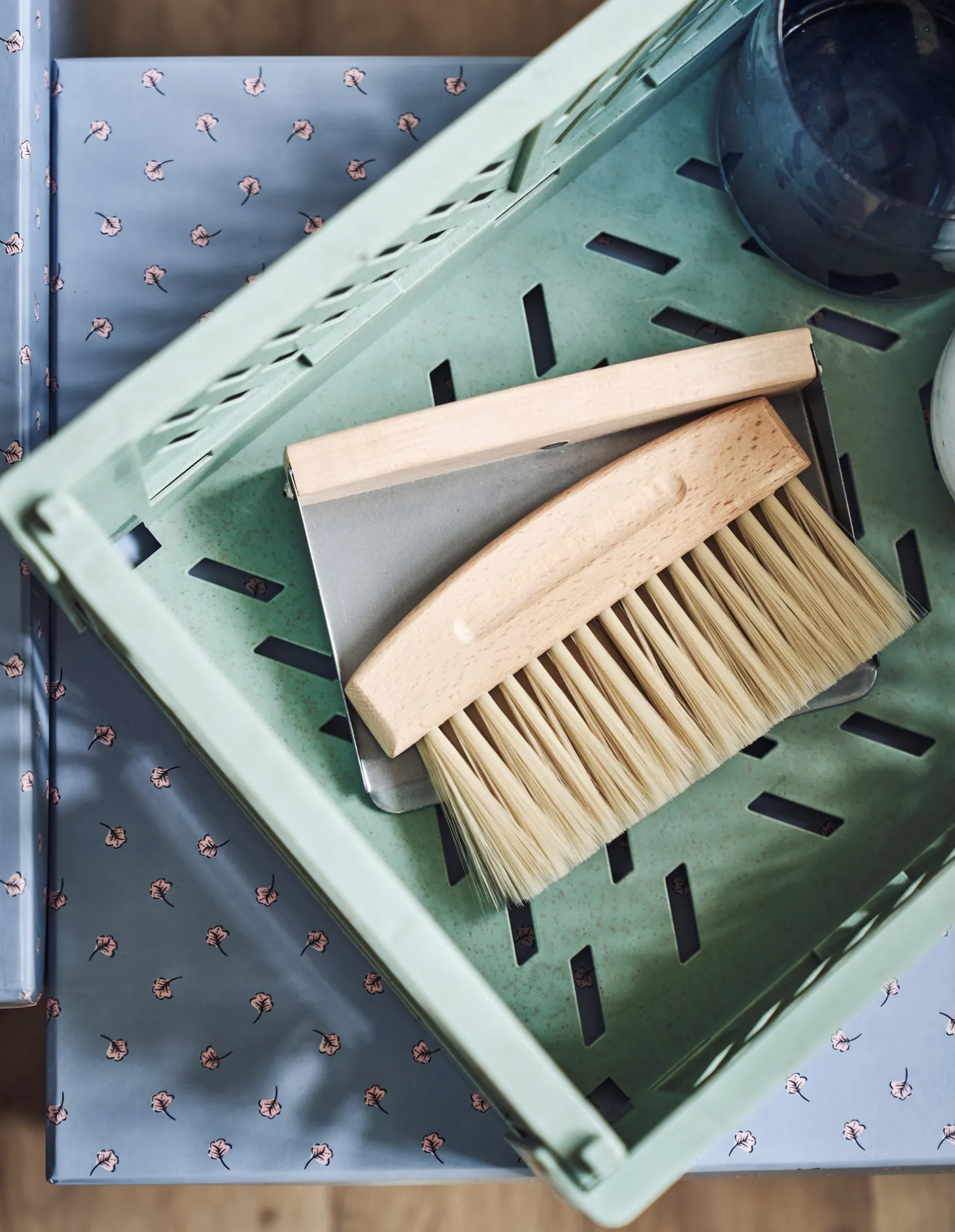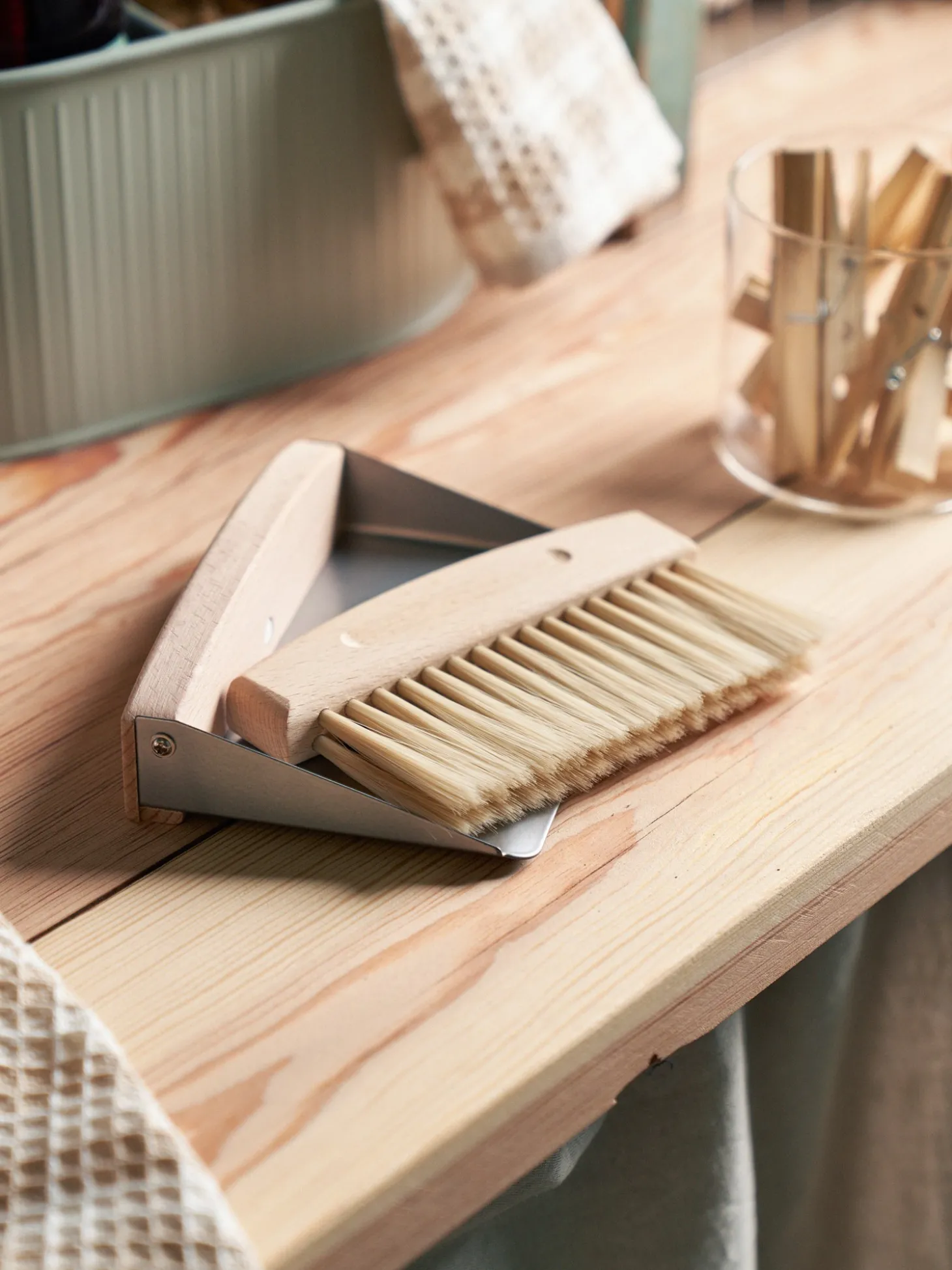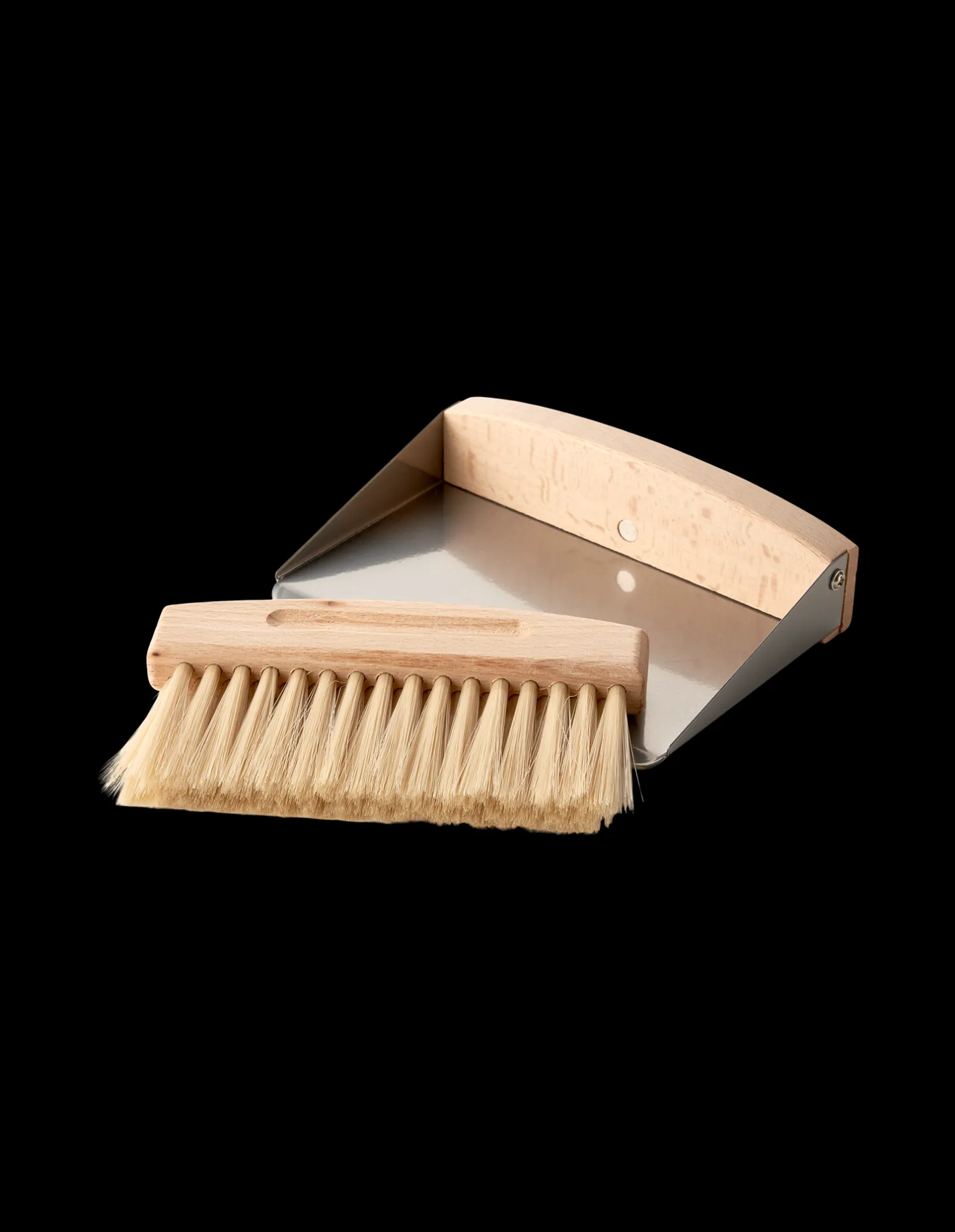 Søstrenes bord-fejebakke og kost er lavet af FSC©-certificeret bøgetræ, metal og plast. Kosten er fastgjort til fejepanden med magneter.