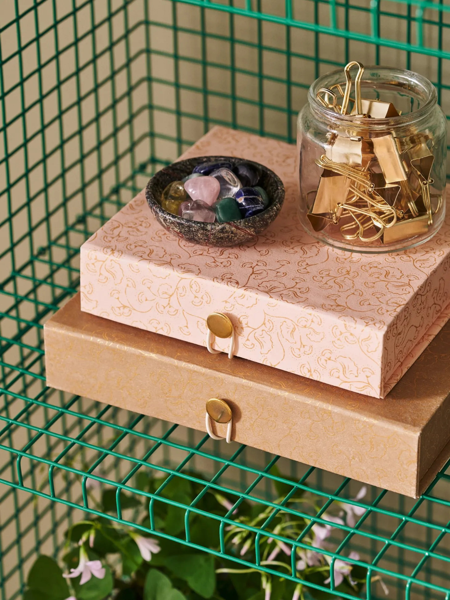 Søstrenes foldeæske er lavet af papir og håndlavet bomuldspapir og måler 27 x 22 x 5 cm.”Praktiske opbevaringsløsninger gør det meget nemmere at holde orden i hjemmet, så der er mere tid til hygge og nærvær,” mener Clara. “Opbevar Deres nips, eller måske små rejsesouvenirs, i praktiske kasser såsom disse,” smiler Anna.