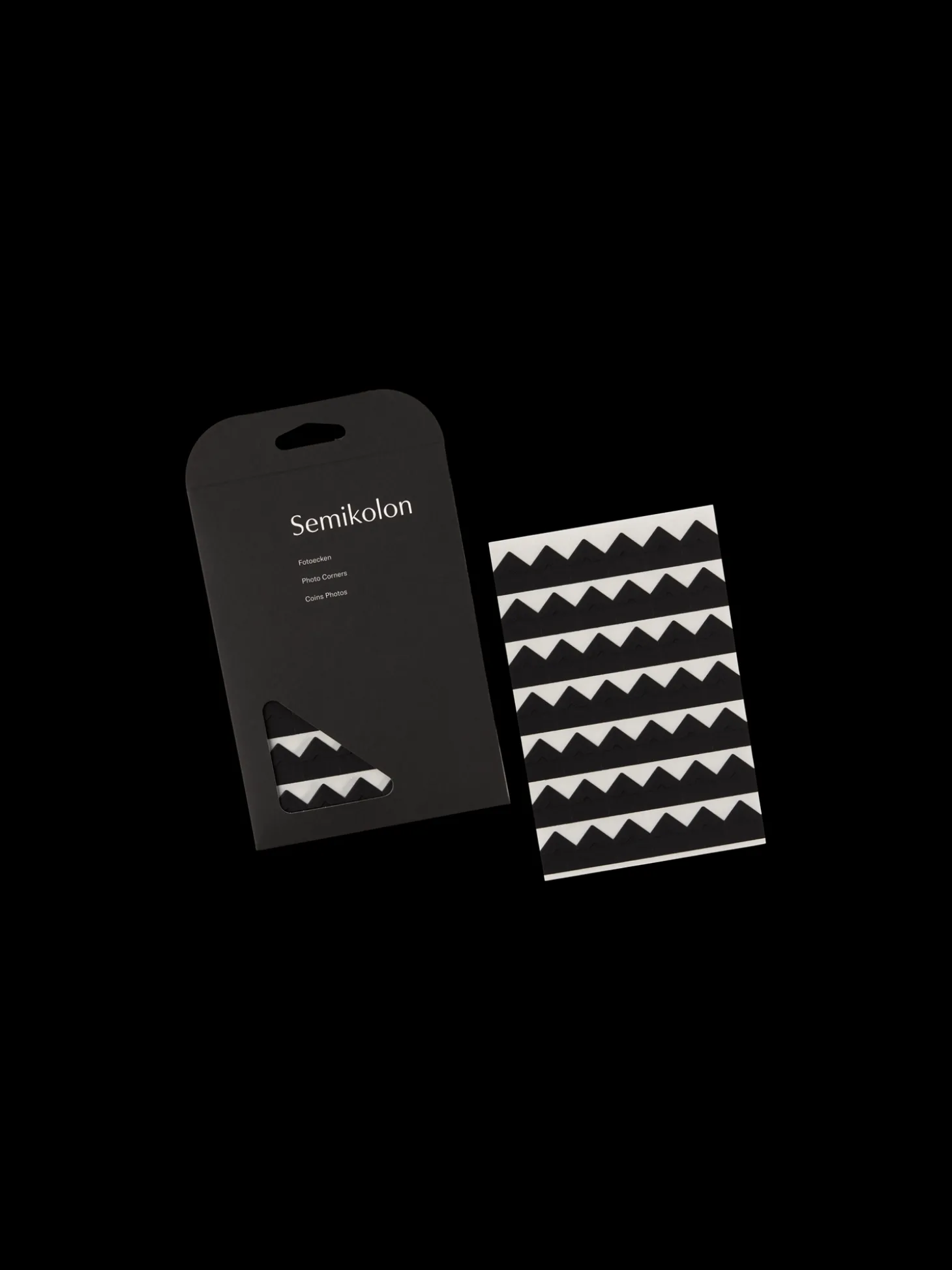 Fotohjørnerne fra Semikolon er lavet af papir og måler 1,2 x 1,2 cm. En pakke indeholder 252 hjørner.