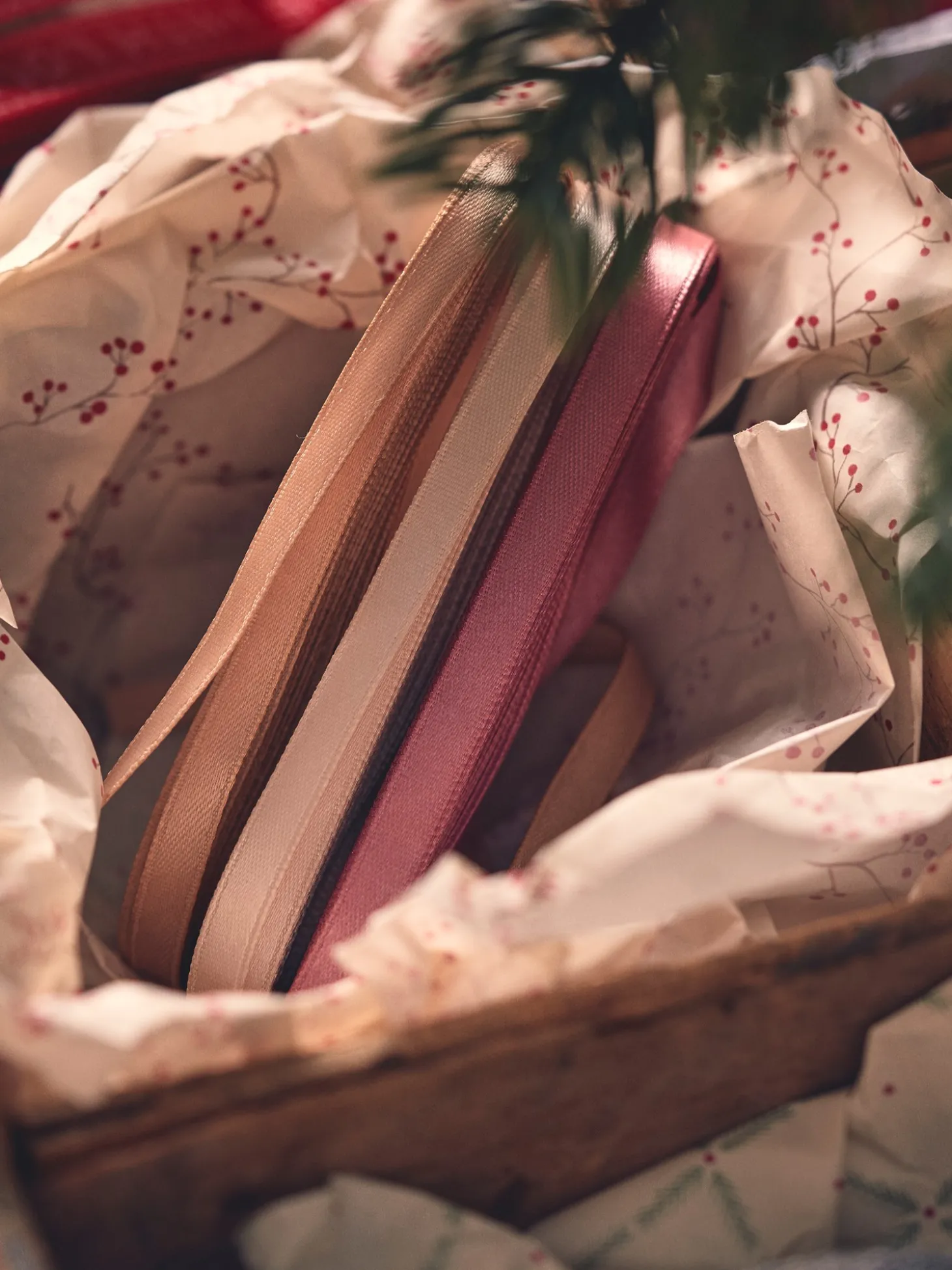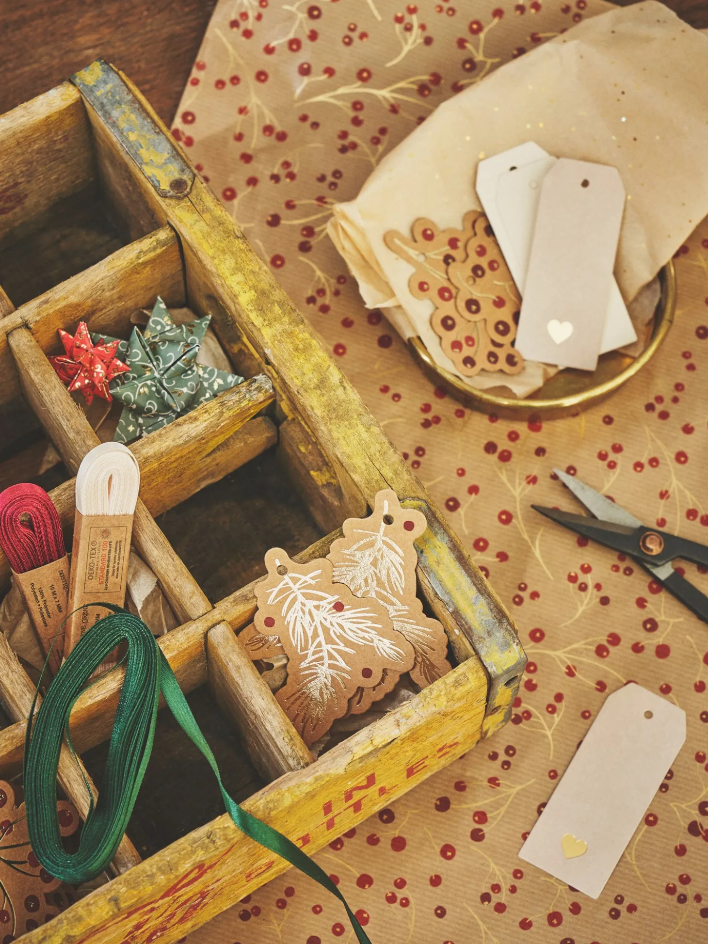 Søstrenes bånd er lavet af STANDARD 100 by OEKO-TEX®-certificeret polyester og måler 7 mm x 10 m.”Båndet er prikken over i’et på gaveindpakningen,” siger Clara.