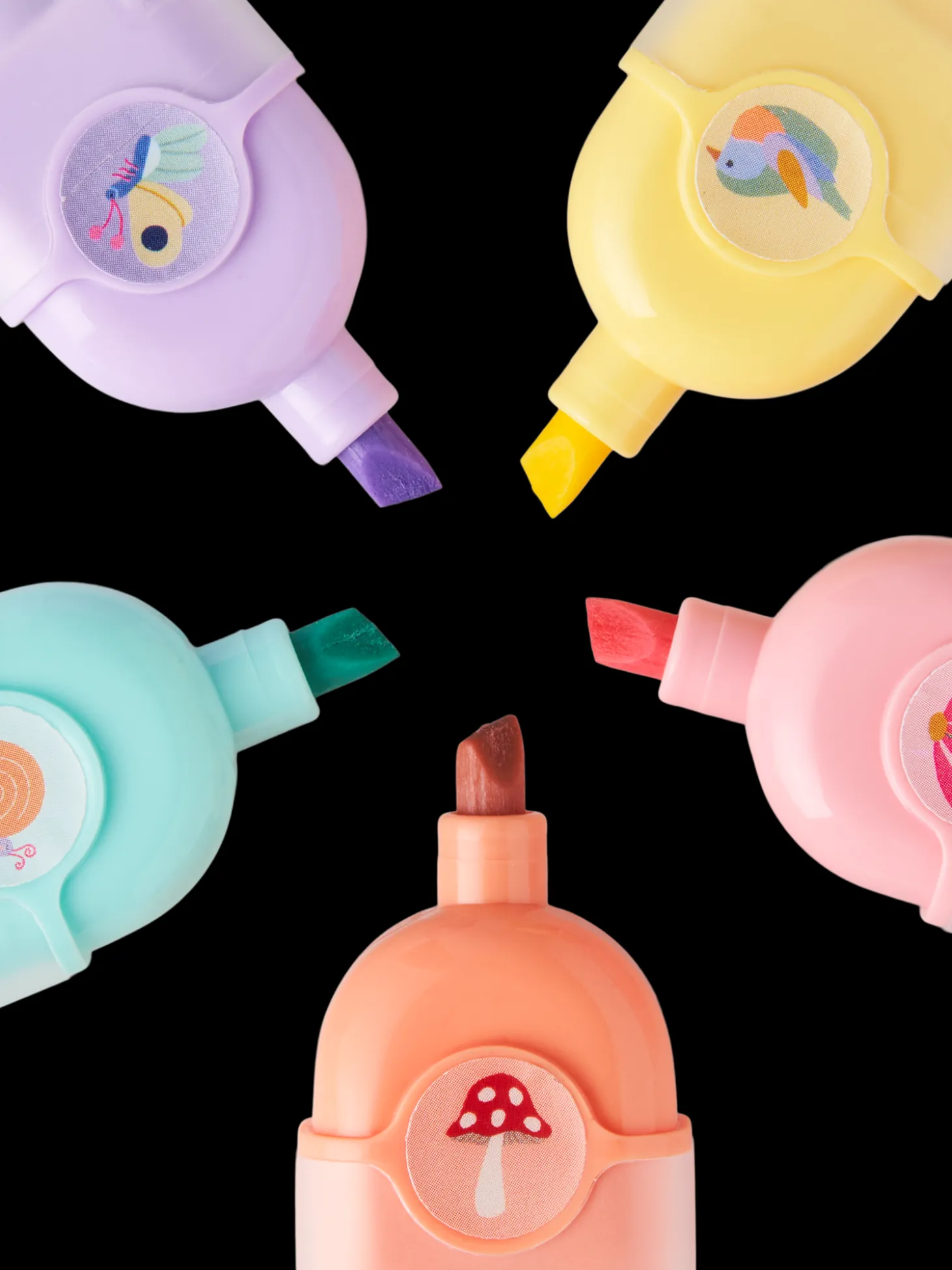 Søstrenes highlightere i forskellige farver har hver især et sødt design.