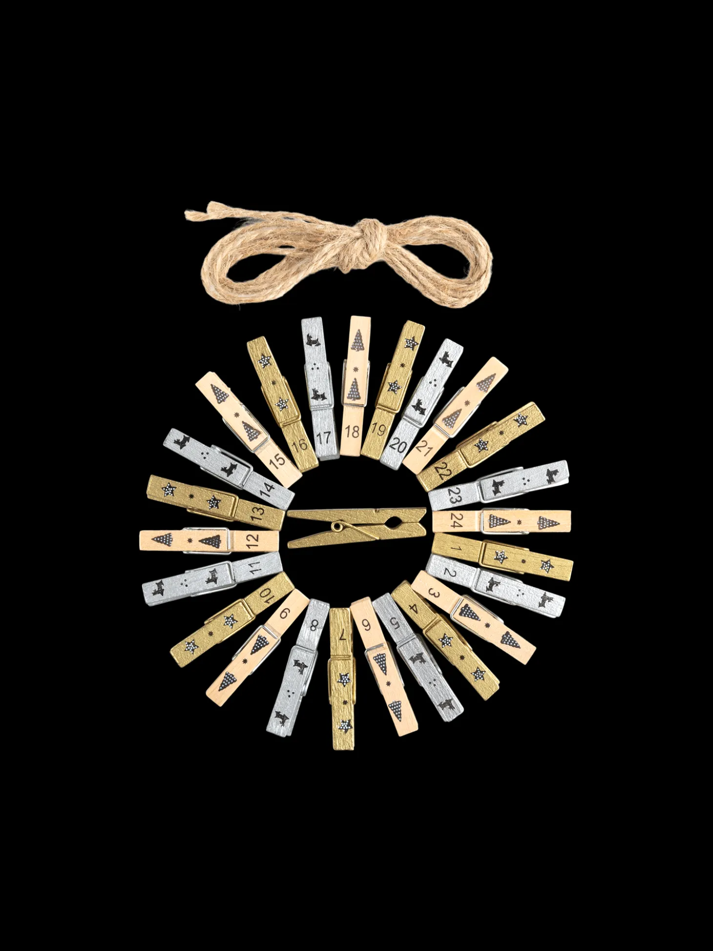 Søstrenes nummererede juleklemmer er lavet af FSC®-certificeret bøgetræ samt jern. En jutesnor på 1,5 m er også inkluderet. Anna foreslår Dem at bruge disse klemmer til at lave en skøn julekalender til de kære små. Med en lille gave på hver klemme kan nedtællingen begynde, og hver dag i december bliver med sikkerhed en dag fyldt med spænding og glæde.
