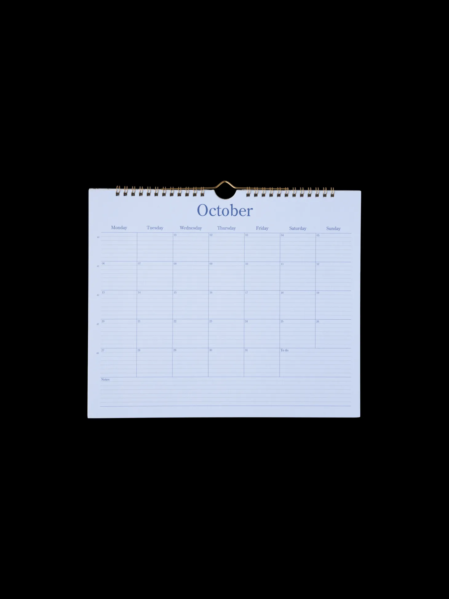 Søstrenes månedskalender er FSC®-certificeret. Den har en krog i toppen til at hænge den på væggen.