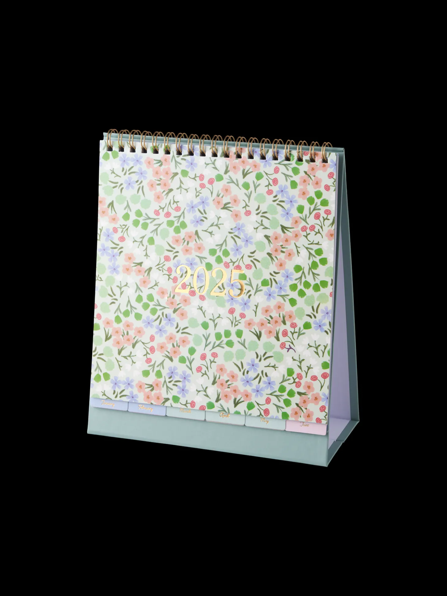 Søstrenes kalender med spiralryg har 12 sider, én for hver måned, og et nyttigt indeksark. Den har en fast bund, så den kan placeres på et skrivebord eller en anden flad overflade.