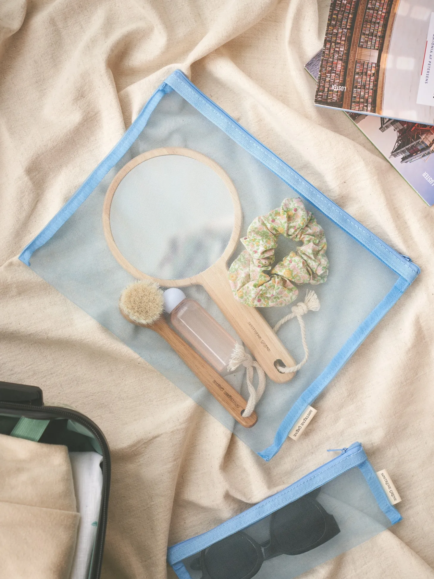 Søstrenes pung er lavet af nylon og måler 31 x 23 cm. Ideel til at medbringe alverdens ting og sager på Deres rejser.