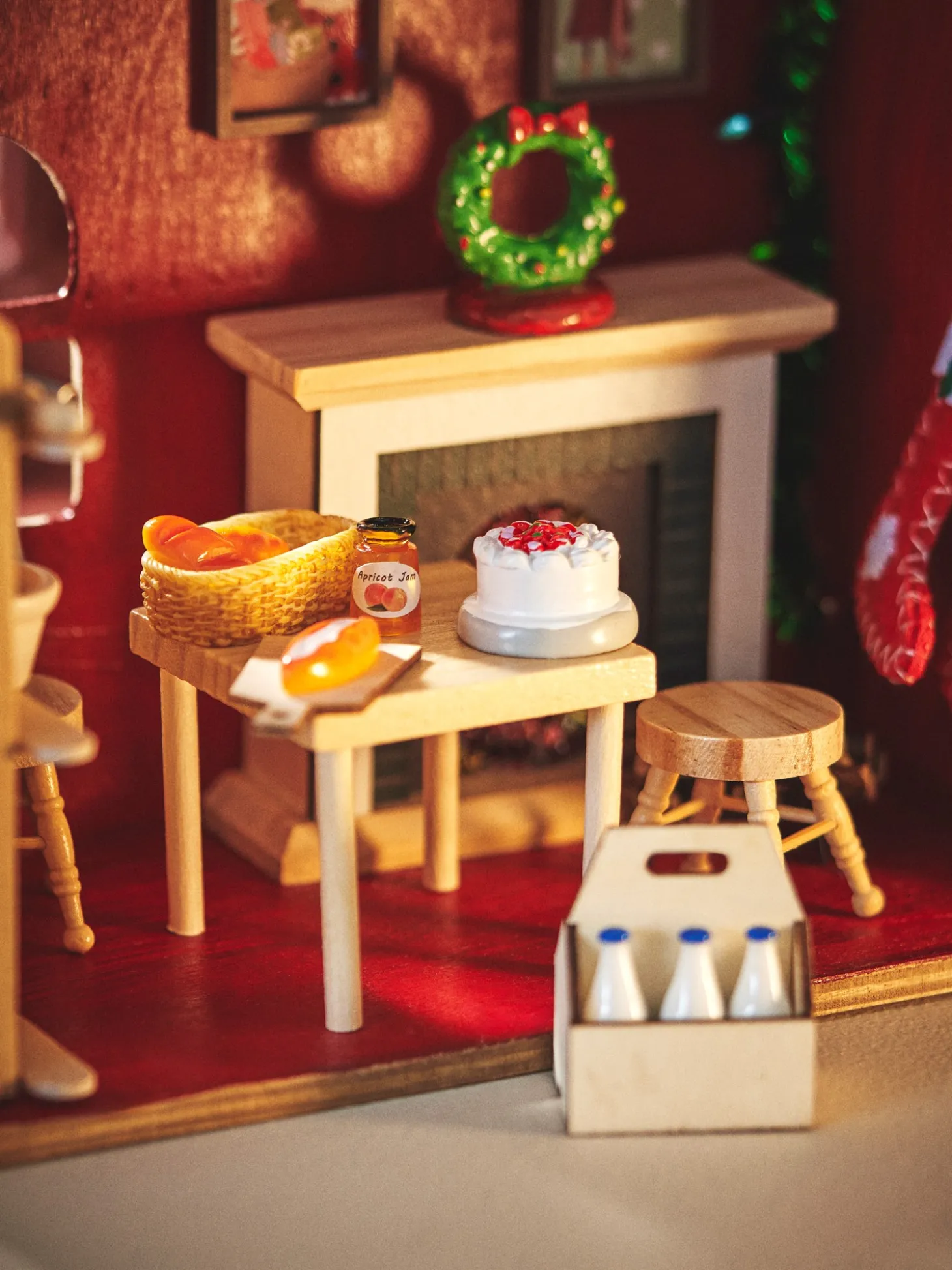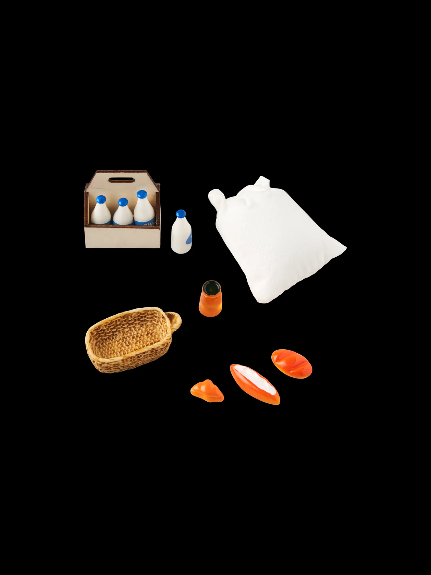 Søstrenes minimadsæt består af en brødkurv på 4 x 2,1 cm, 3 forskellige brød, en honningkrukke, en mælkekasse af 100% FSC®-certificeret krydsfiner, 6 mælkeflasker og en pose mel.Det er en herlig tilføjelse til Deres miniature julelandsby eller det lille julenissehus.