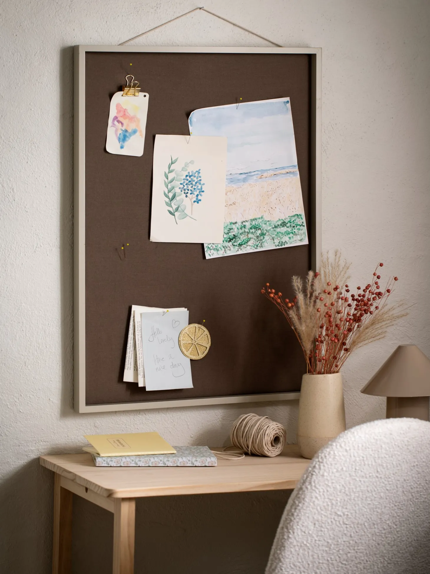 Søstrenes opslagstavle er lavet af FSC®-certificeret MDF og har en krog på bagsiden, så den kan hænges op. Ideel til fastgørelse af noter, indkøbslister, fotos eller andre små souvenirs.