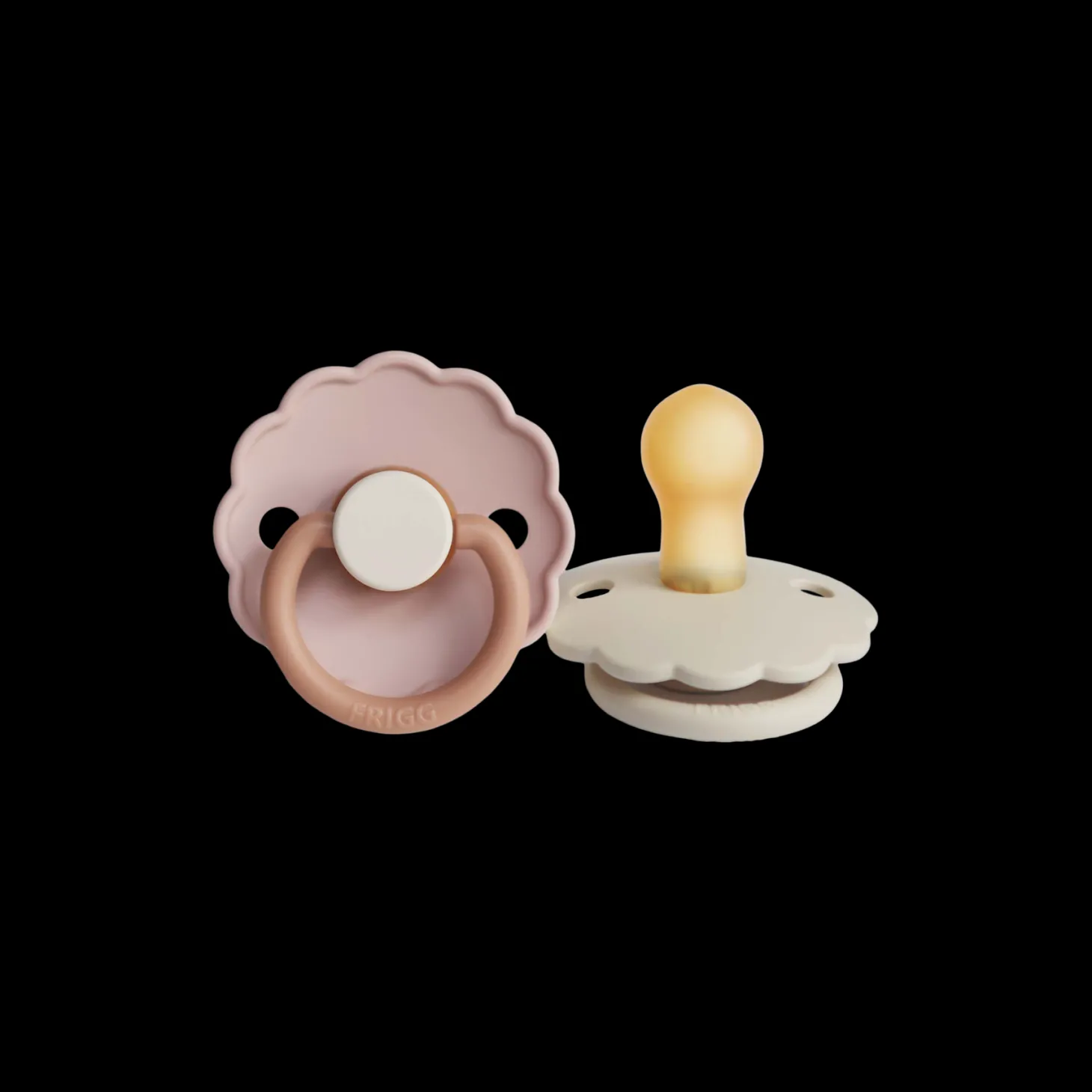 Daisy-sutterne fra det danske mærke FRIGG er designet og produceret i Danmark. Pakken indeholder 2 FRIGG-sutter. Sutterne har låsemekanismen click-lock® og en ny SilkySoft™ overflade. Sutten er lavet af 100% naturgummi og kommer i en størrelse 1, ideel til alderen 0-6 måneder. Sutten er rund og måler 27 mm. Daisy-sutterne fra FRIGG har yndige, flossede kanter, der minder om en særlig blomst: Tusindfryden, som er Danmarks nationalblomst. Denne pakke indeholder en Buiscuit-farvet sut og en Cream-farvet sut. Søstrene gør opmærksom på, at sutterne bør udskiftes hver 4.-8. uge af hygiejniske årsager og for optimal sikkerhed. De bør altid tjekke sutten før brug og kassere den ved første tegn på beskadigelse eller slid.
