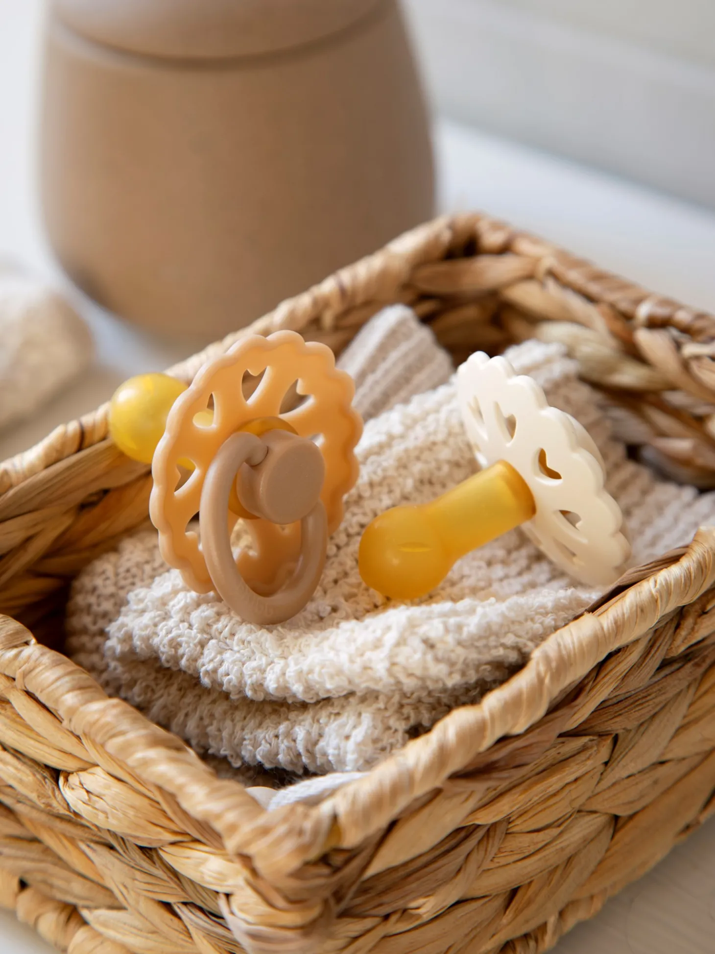 Fairytale-sutterne fra det danske mærke FRIGG er designet og produceret i Danmark. Pakken indeholder 2 FRIGG-sutter. Sutterne har låsemekanismen click-lock® og en ny SilkySoft™ overflade. Sutten er lavet af 100% naturgummi og kommer i en størrelse 2, ideel til alderen 6-18 måneder. Sutten er rund og måler 30 mm. Fairytale-sutterne fra FRIGG er inspireret af ni af H.C. Andersens kendte eventyr. Hver farve har derfor fået tildelt et eventyrnavn. Denne pakke indeholder en ‘Den Grimme Ælling’-sut og en ‘Kejserens nye klæder’-sut. Søstrene gør opmærksom på, at sutterne bør udskiftes hver 4.-8. uge af hygiejniske årsager og for optimal sikkerhed. De bør altid tjekke sutten før brug og kassere den ved første tegn på beskadigelse eller slid.