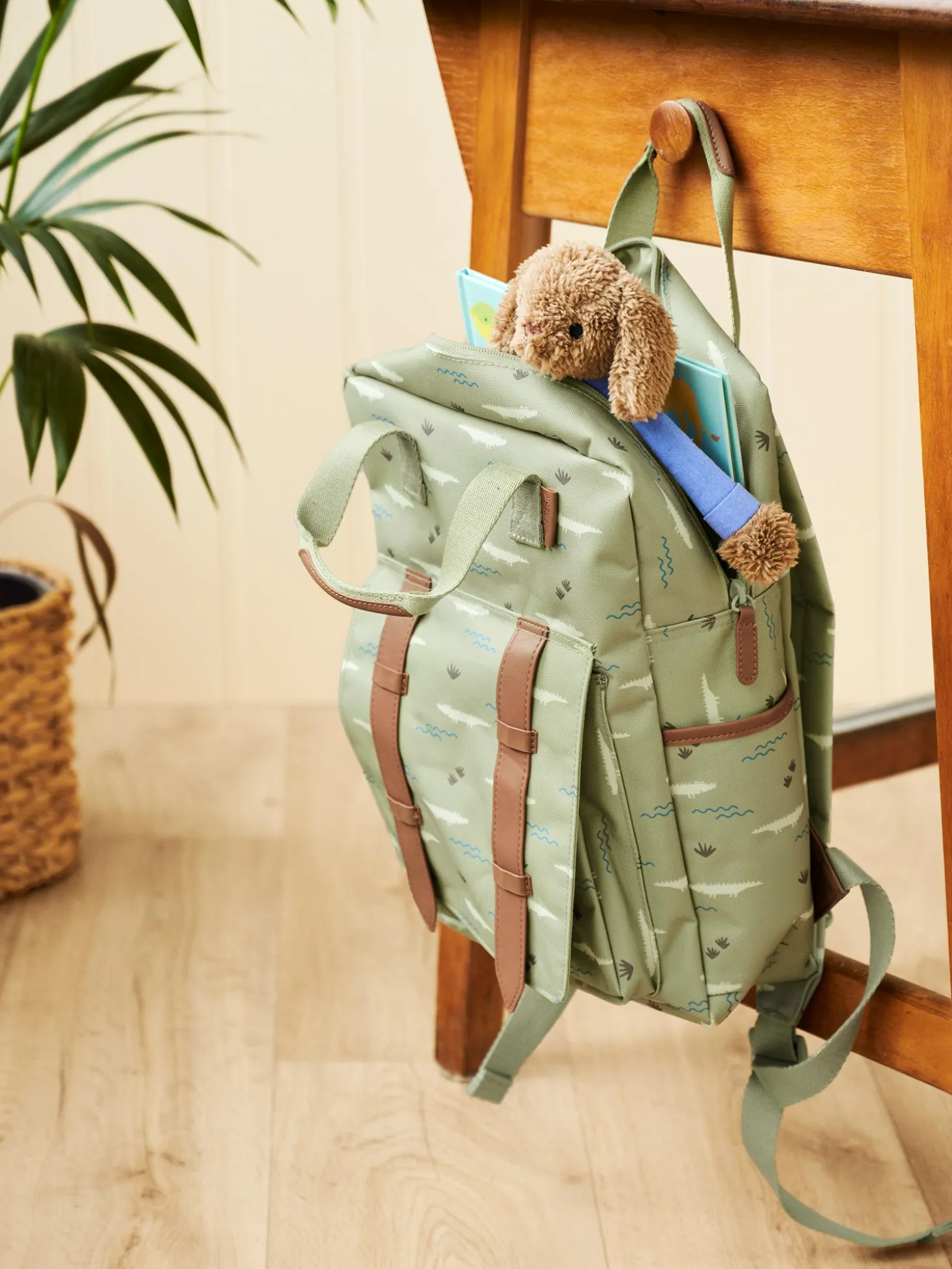 Denne rygsæk fra Fresk kommer i en størrelse large, som måler 36 x 26 x 10 cm.Rygsækken er udstyret med flere lommer til at pakke og opbevare alle Deres vigtige genstande sikkert. Indvendigt finder De plads til opbevaring af Deres drikkeflaske, mens yderlommen har en magnetisk lukning for lettere tilgængelighed, når De er på farten.”Forbered Dem til de smås skolestart med denne æstetiske og funktionelle rygsæk,” foreslår Clara. “Den er også god til studerende eller til Deres kommende eventyr.”