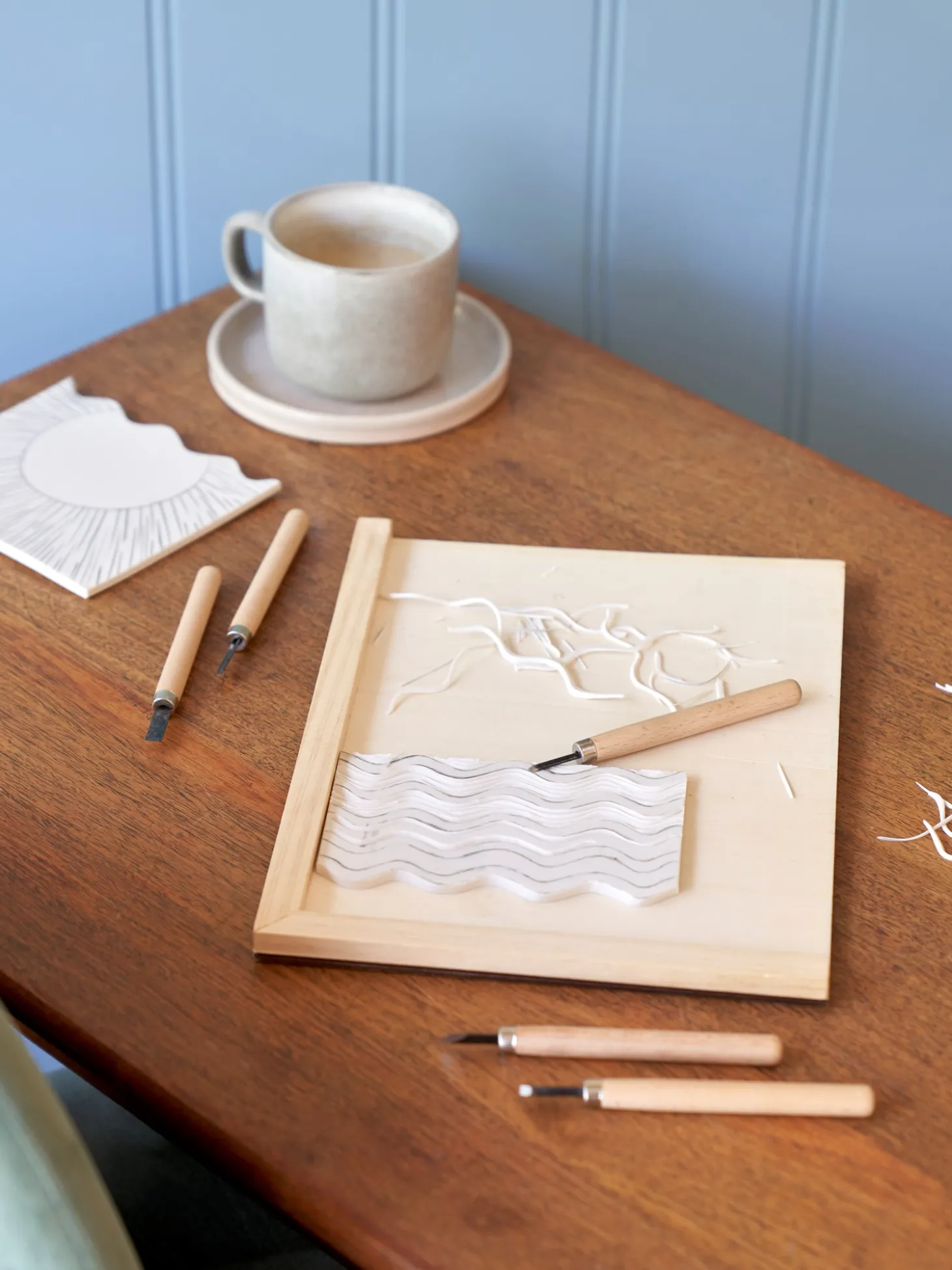 Søstrenes sæt til linoleumstryk er lavet af jern og bøgetræ, der hver måler 13 x 1 cm. Det indeholder 5 udskæringsværktøjer til linoleumskunst.”Linoleumssnit, også kendt som linoleumstryk, er en form for grafisk trykteknik, der indebærer udskæringen af et mønster eller design i en linoleum- eller gummioverflade, som derefter kan bruges til trykning,” forklarer Anna med et smil. “Det er en vidunderlig kreativ aktivitet, og disse værktøjer til linoleumstryk kan hjælpe Dem med at skære Deres ønskede design i Deres linoleumsplade.”