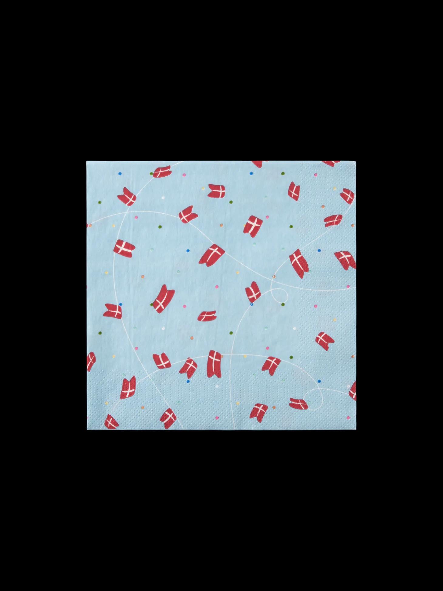 Søstrenes fødselsdagsservietter med flag er lavet af papir og måler 33 x 33 cm. Hver pakke indeholder 20 stk. Hjemme hos Anna og Clara er det en tradition at pynte op og anrette en festlig morgenmad for fødselaren – hvad enten der fejres med hele familien eller bare i hinandens gode selskab. “En smuk serviet fuldender bordet,” smiler Clara, som placerer disse fine servietter med flag på søstrenes elegant dækkede morgenbord.
