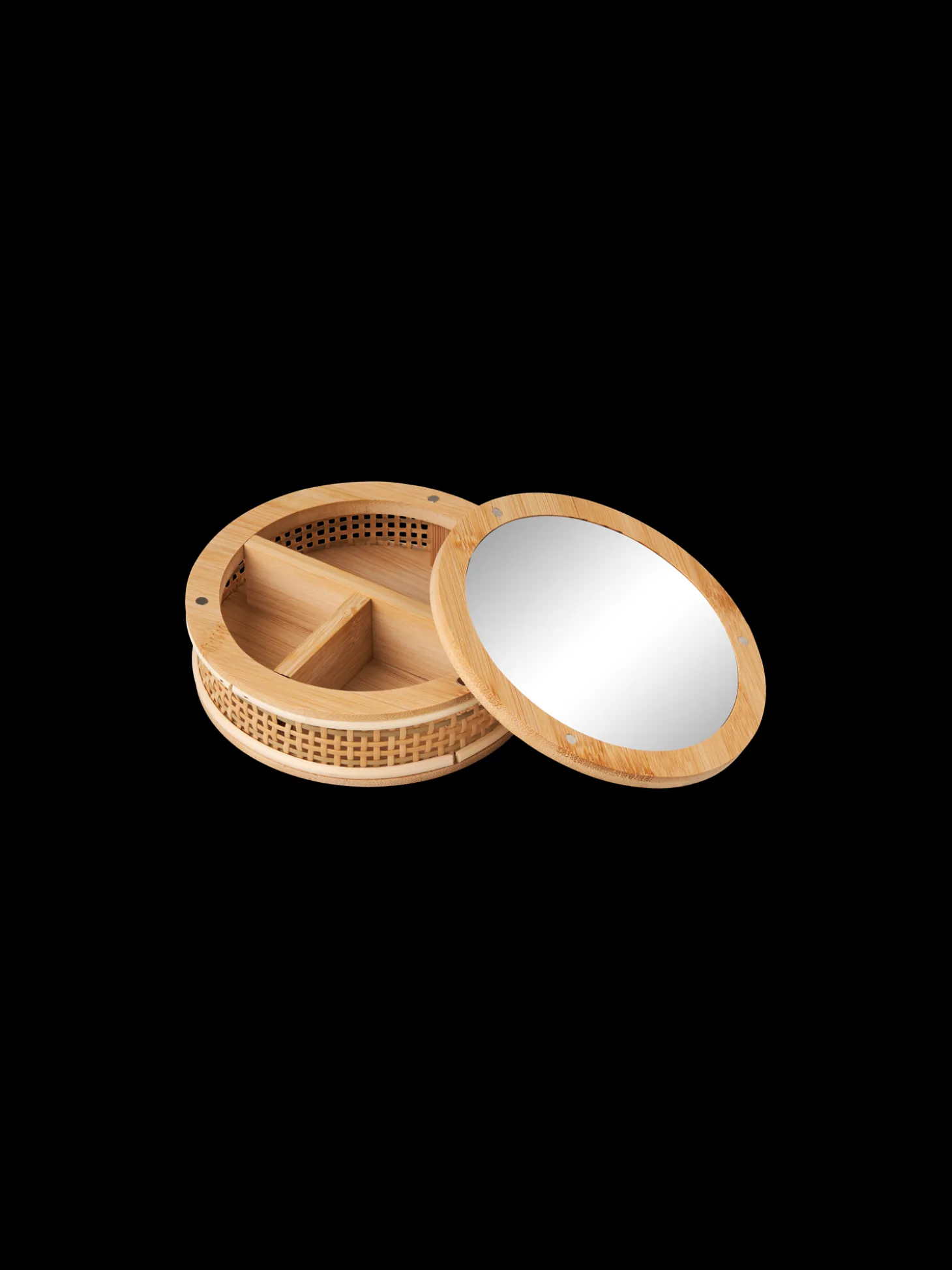 Søstrenes smykkeæske er lavet af FSC®-certificeret bambus samt glas og plastik. Det har et lille spejl, som De kan beundre Deres smukke selv i.