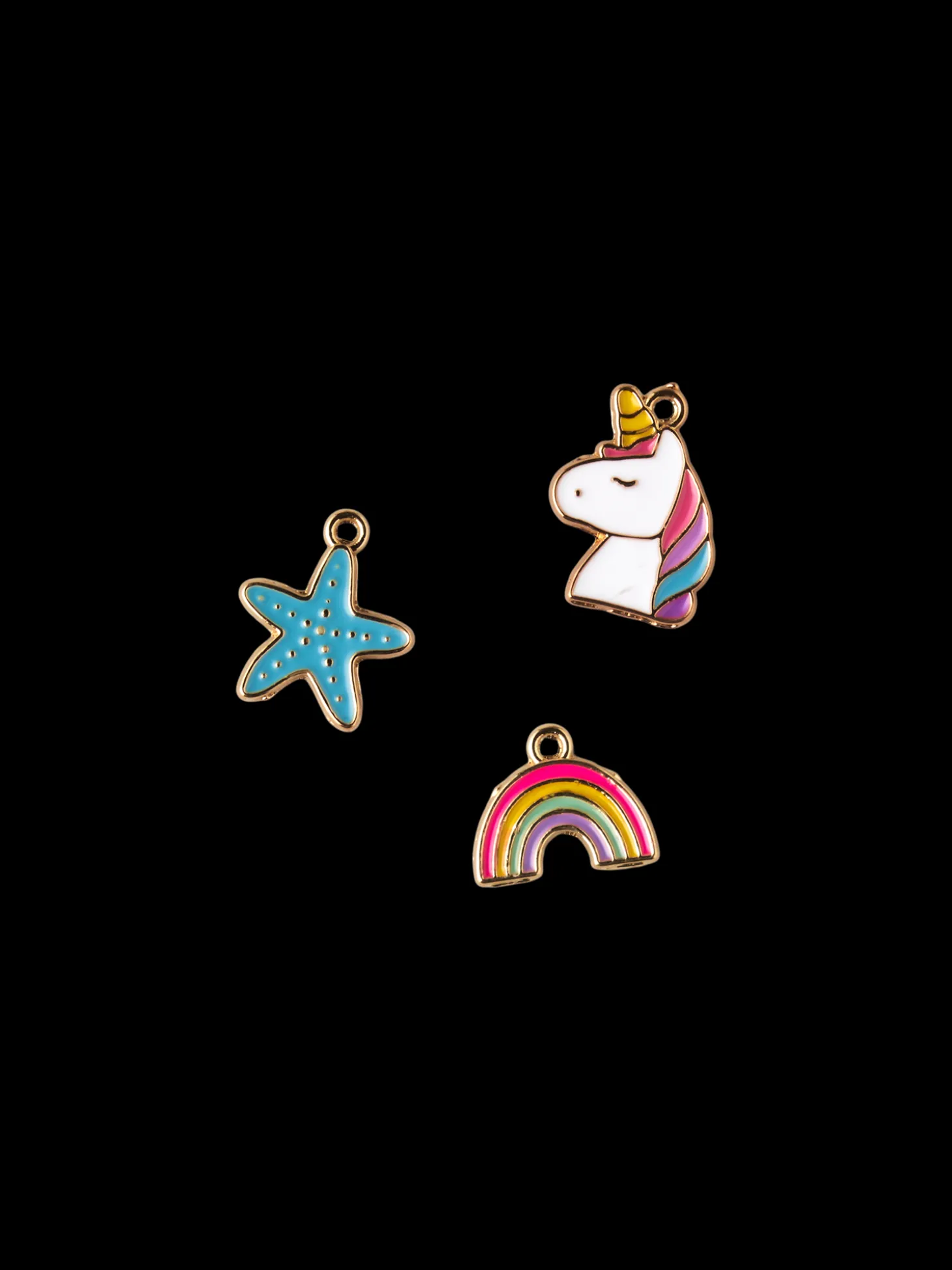 Søstrenes smykkevedhæng består af 1 enhjørning, der måler 15 x 19,5 mm, 1 regnbue, der måler 15 x 11,6 mm og 1 søstjerne, der måler 15 x 17,3 mm.”Kreative sysler er nogle af livets store glæder,” mener Anna.