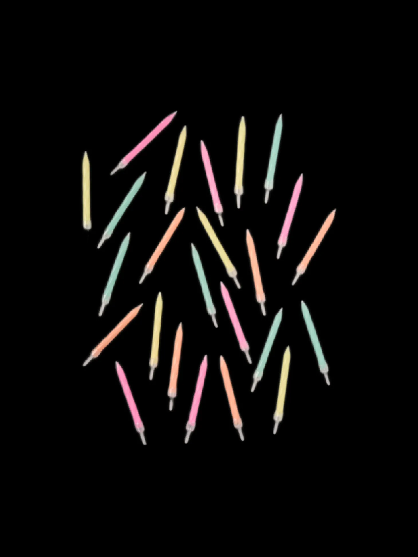 Søstrenes snoede kagelys er lavet af paraffin, og hver pakke indeholder 24 snoede lys i skønne farver samt 24 gennemsigtige lysestager. Hvert lys måler 0,5 cm i diameter og 6 cm i længden.