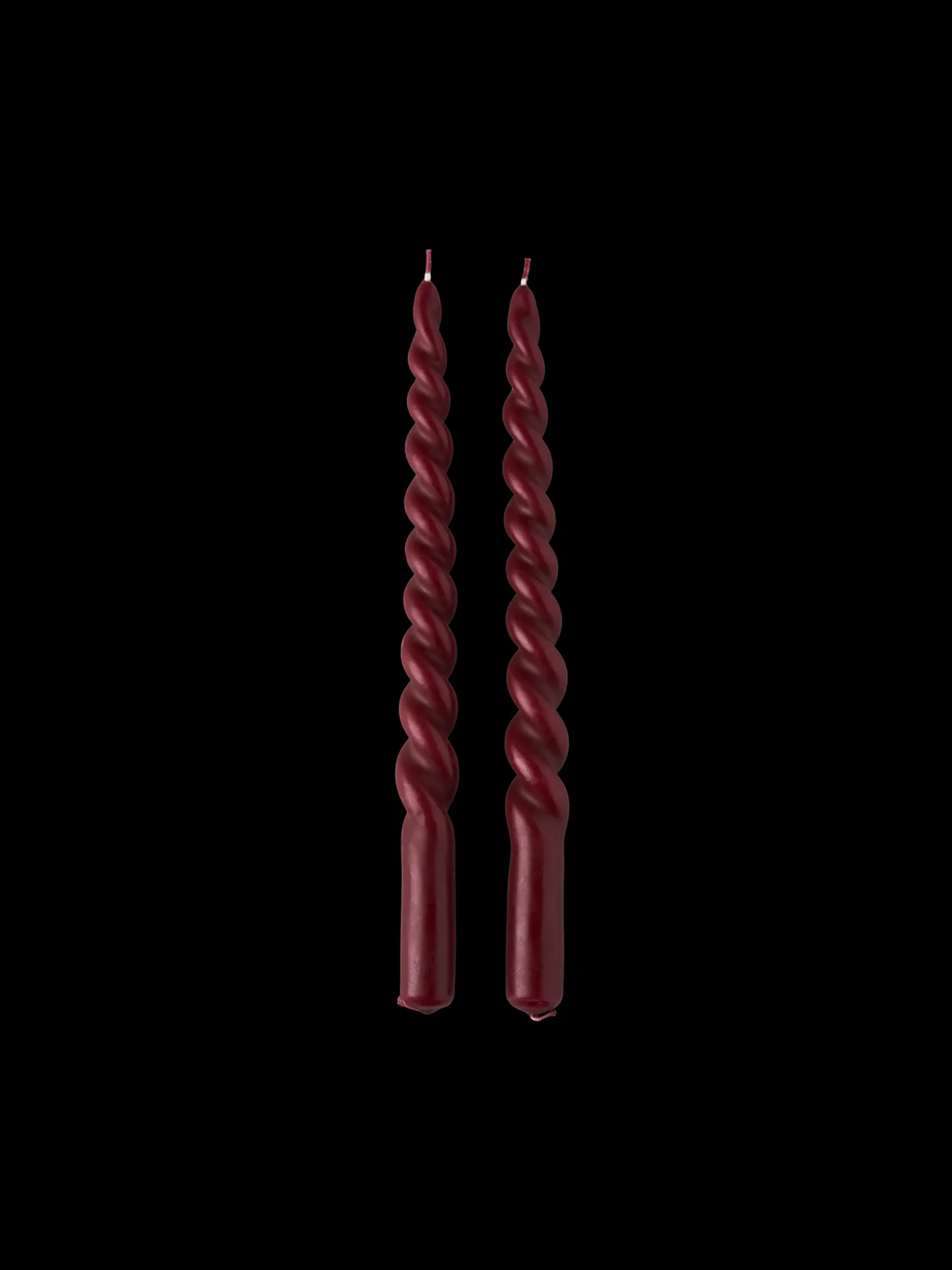 Søstrenes snoede lys er lavet af paraffinvoks og måler 28 x 2,2 cm. De har en brændetid på omtrent 9 timer.