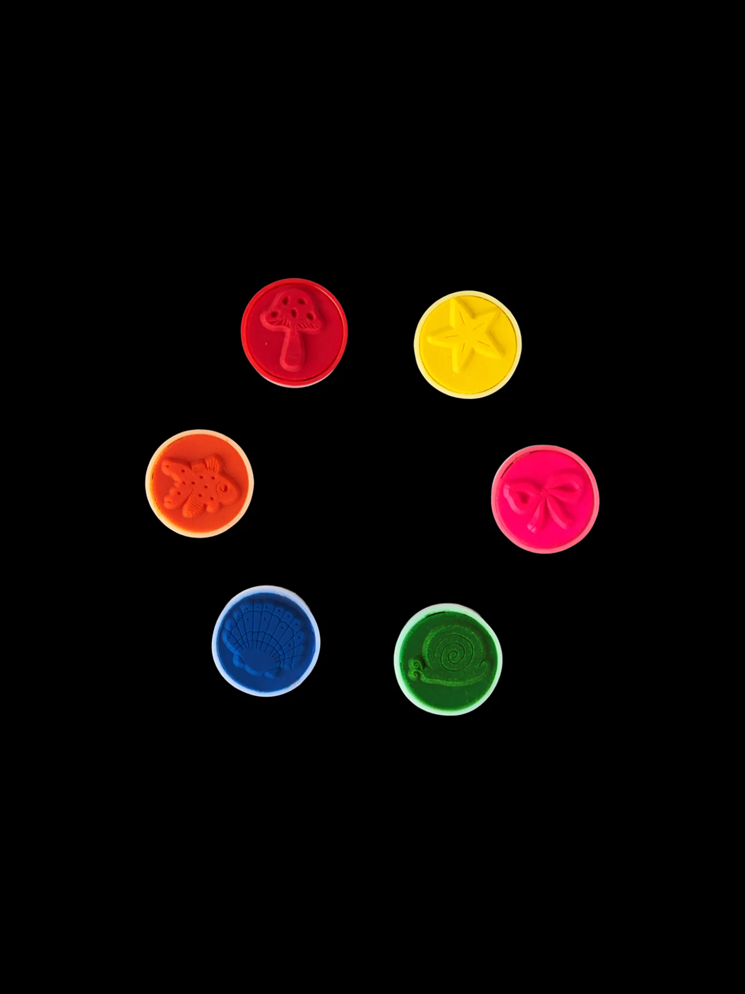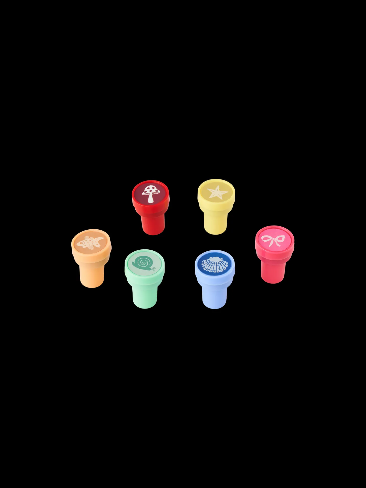 Søstrenes frimærkesæt indeholder 6 runde frimærker med forskellige motiver.