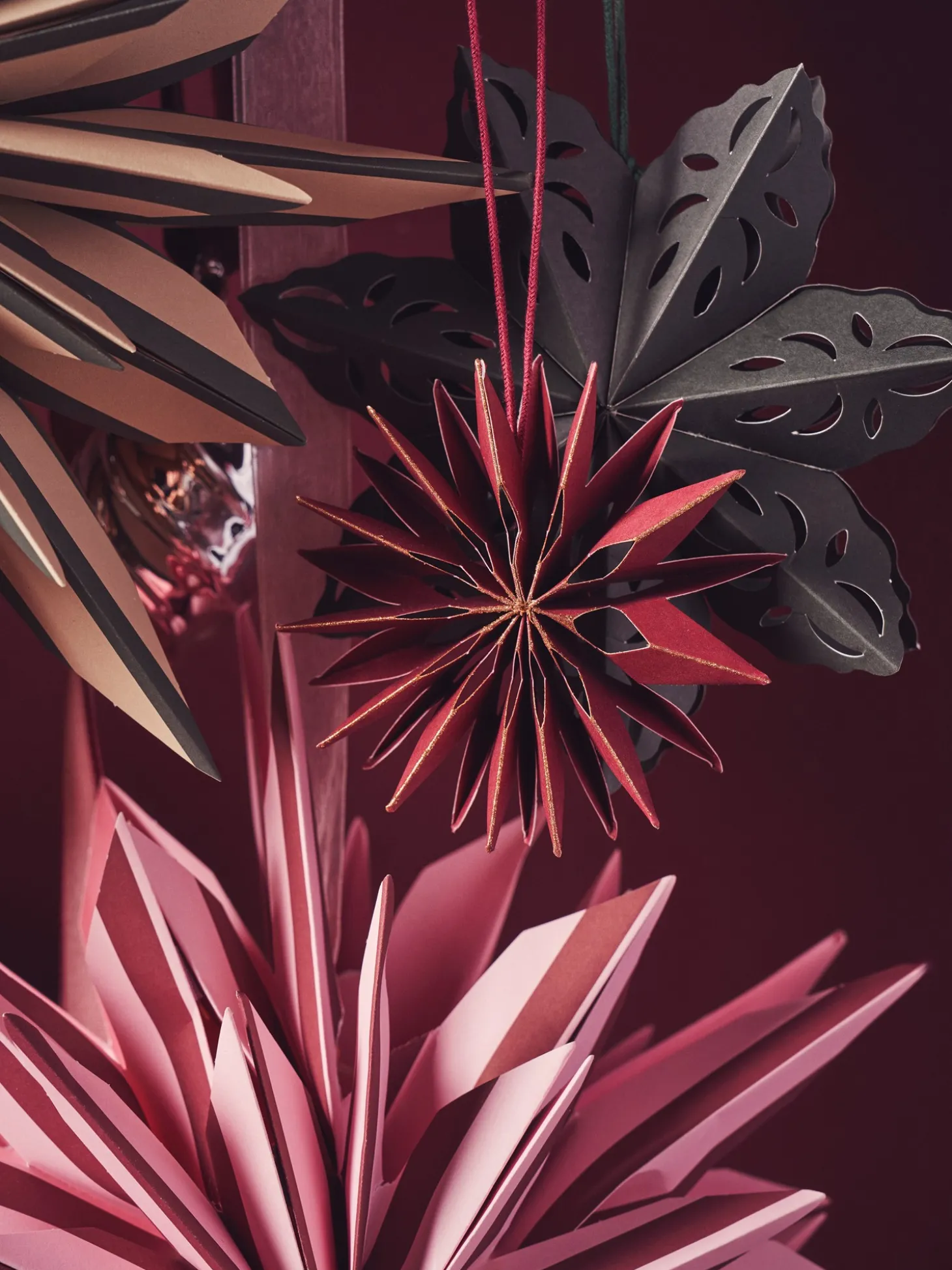 Søstrenes hængende stjerne er lavet af FSC®-certificeret papir.Lad stjernen skinne alene, eller kombinér den med andre papirstjerner og snefnug i en magisk udstilling.