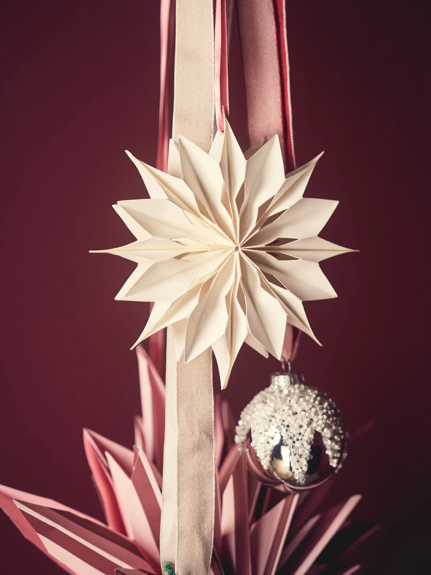 Søstrenes hængende stjerne er lavet af FSC®-certificeret papir.Lad stjernen skinne alene, eller kombinér den med andre papirstjerner og snefnug i en magisk udstilling.