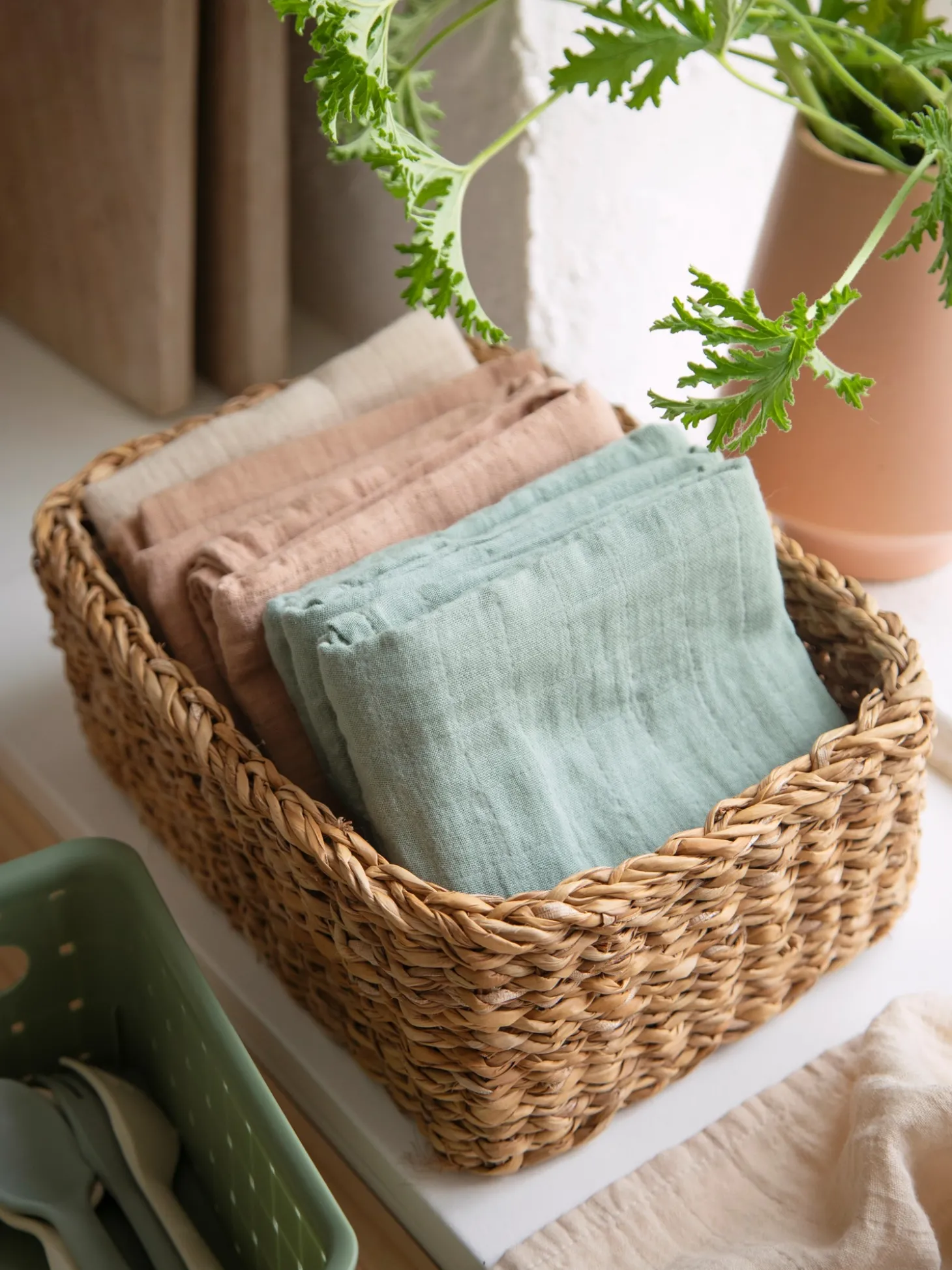 Stofbleerne fra Mushie kommer i en pakke med 3. De er lavet af bomuld og er praktiske i forskellige dagligdagssituationer, idet de både fungerer som beroligende minitæpper, pusleunderlag, til rengøring af små uheld og meget mere.