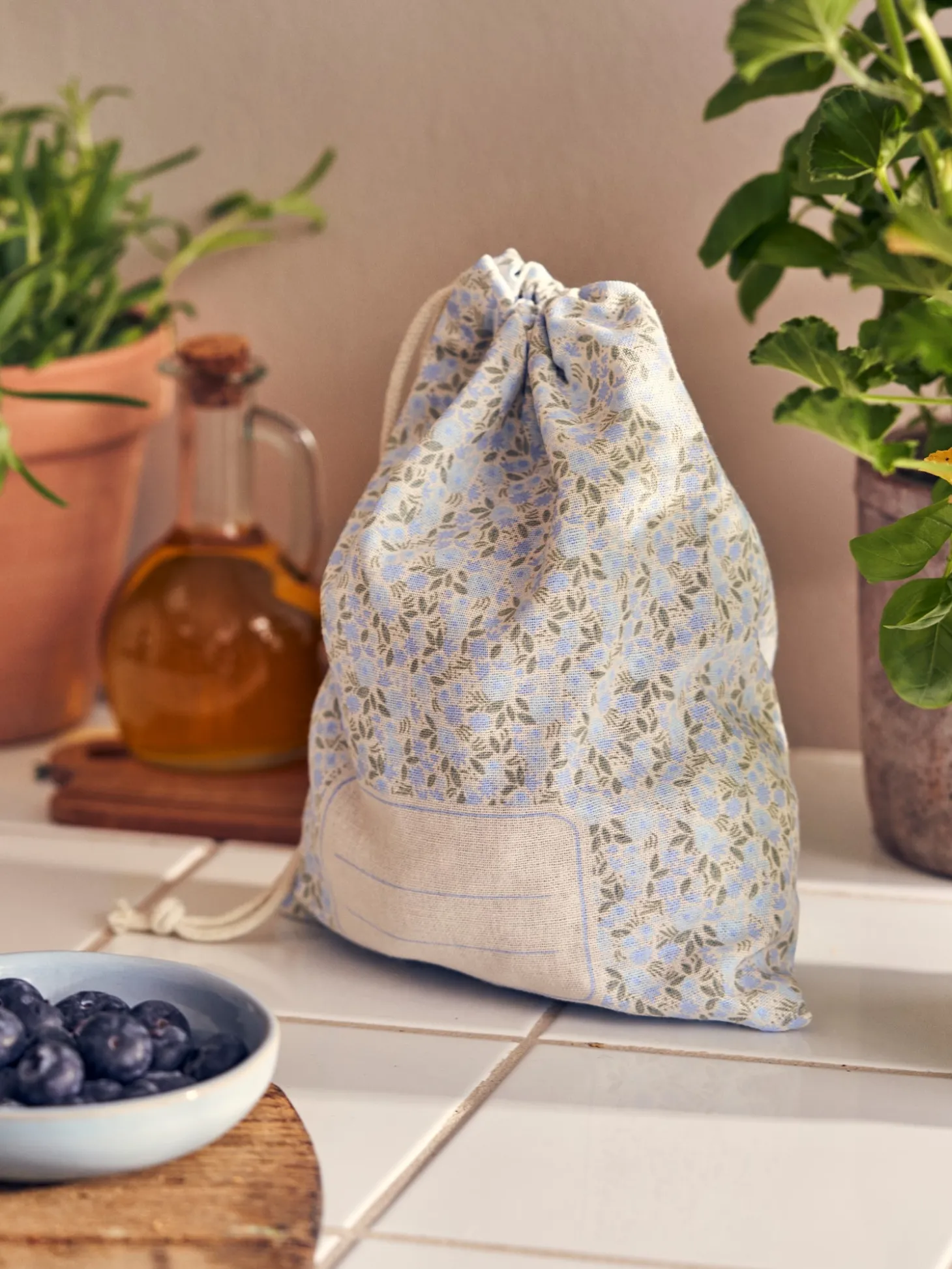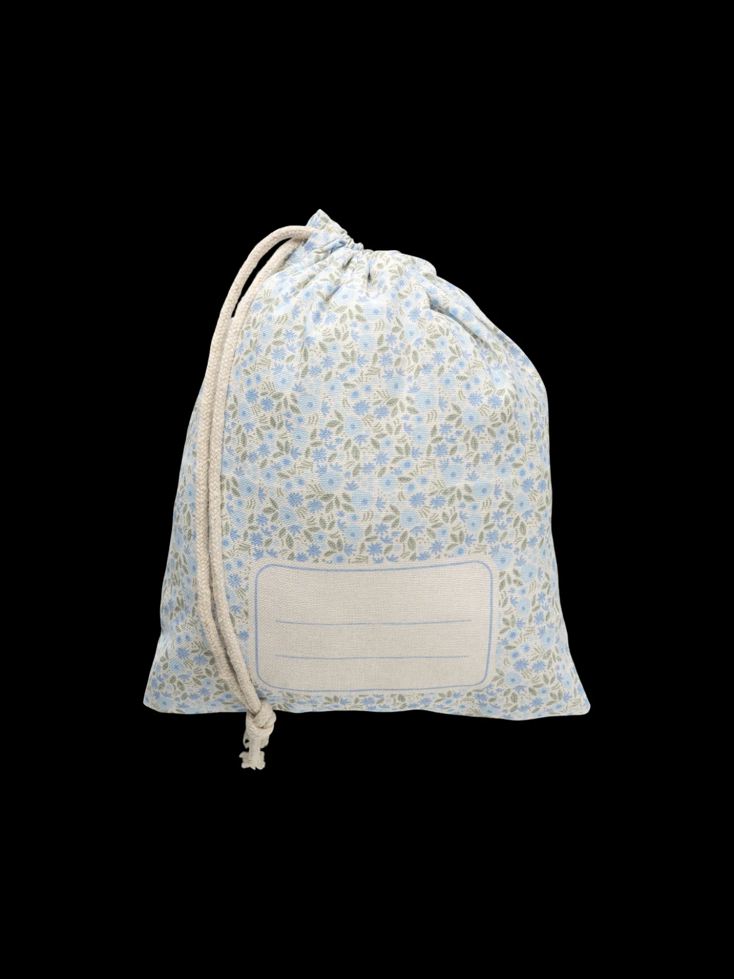 Søstrenes stofpose er lavet af STANDARD 100 by OEKO-TEX®-certificeret bomuld. Den har et mærkat, så De kan skrive navn eller indhold med en tekstilmarkør.