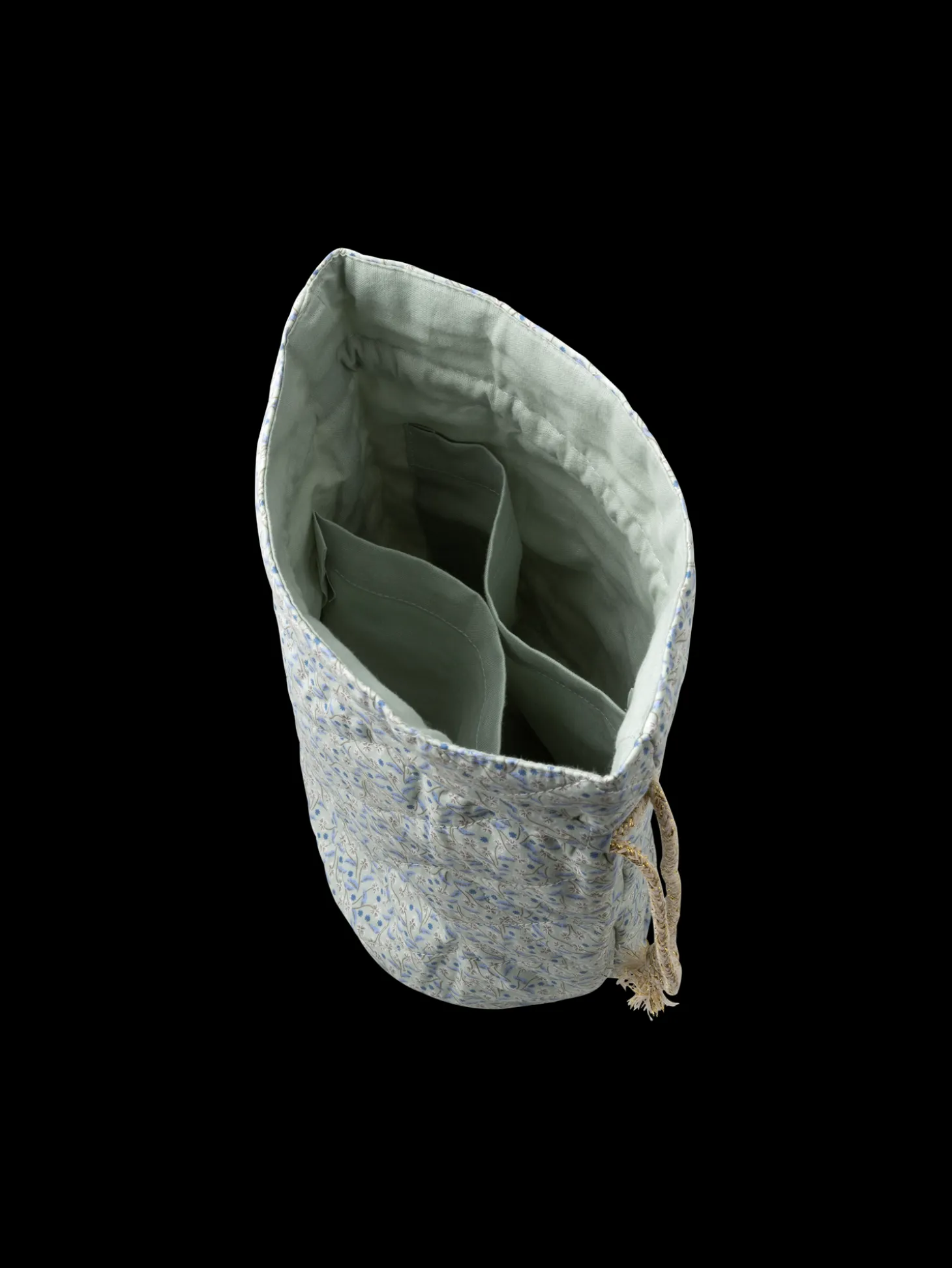 Søstrenes toilettaske er lavet af GOTS-certificeret* bomuld med polyesterfyld og lukkes med snøre.*1132004 Control Union