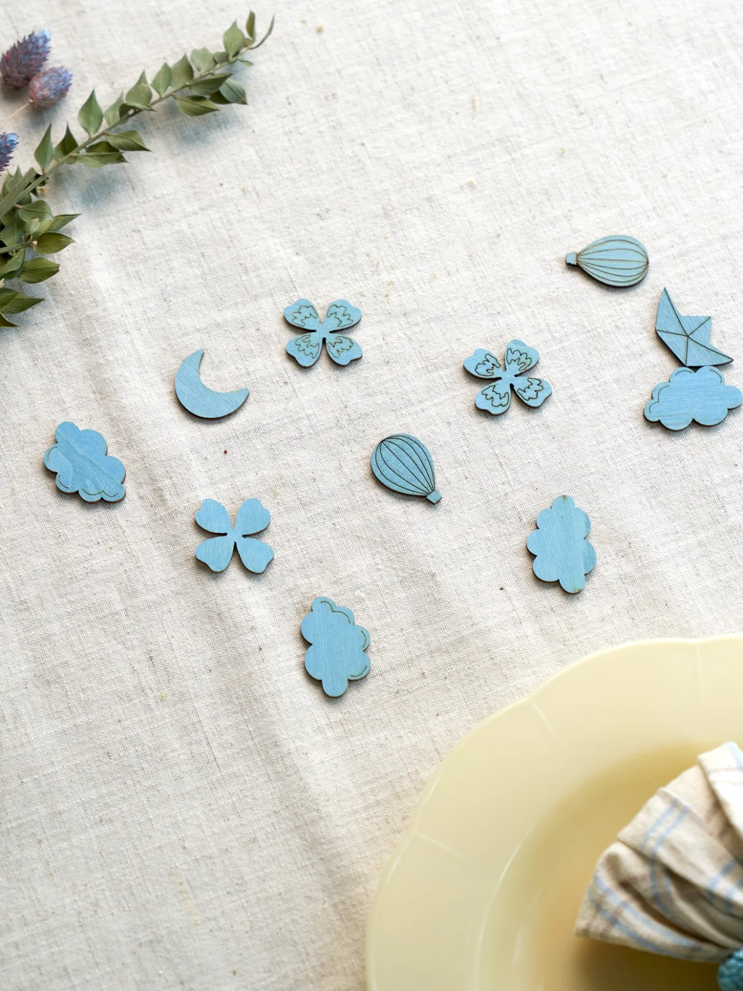 Søstrenes trækonfetti er 100 % FSC®-certificeret. En pakke indeholder 50 sjove former, der kan pifte enhver festlig lejlighed op.