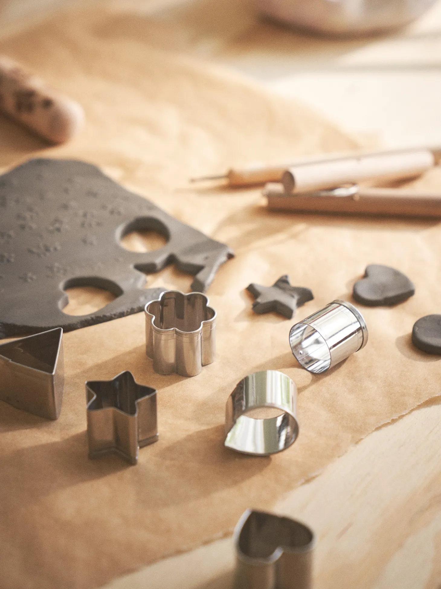 Søstrenes udstikkere til ler kommer i et sæt med 6 stk. De kan bruges til at skære ler i kreative former.