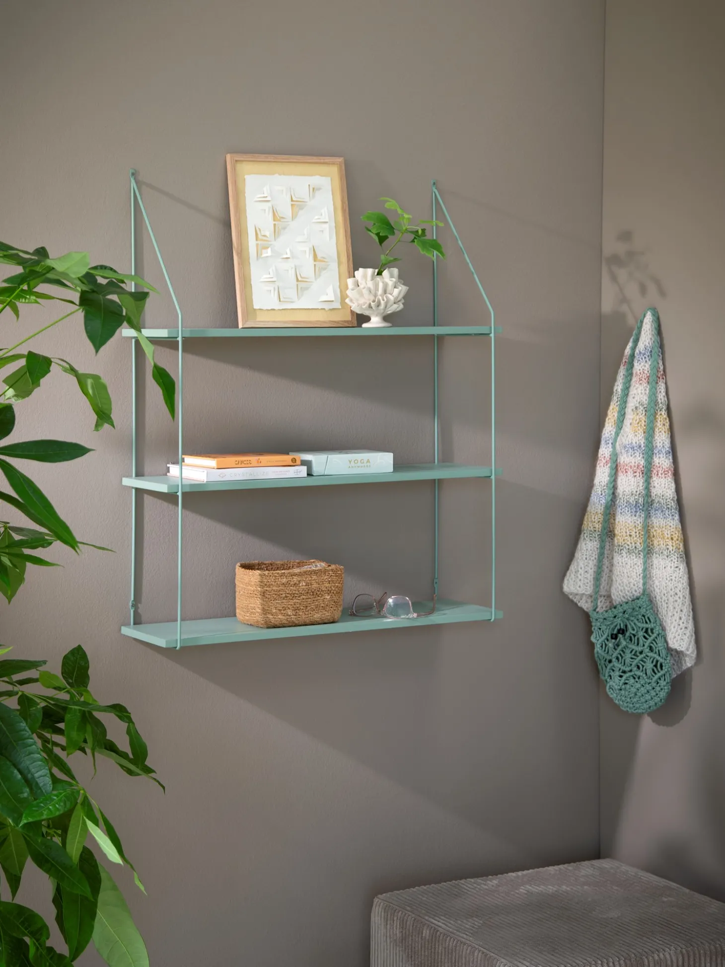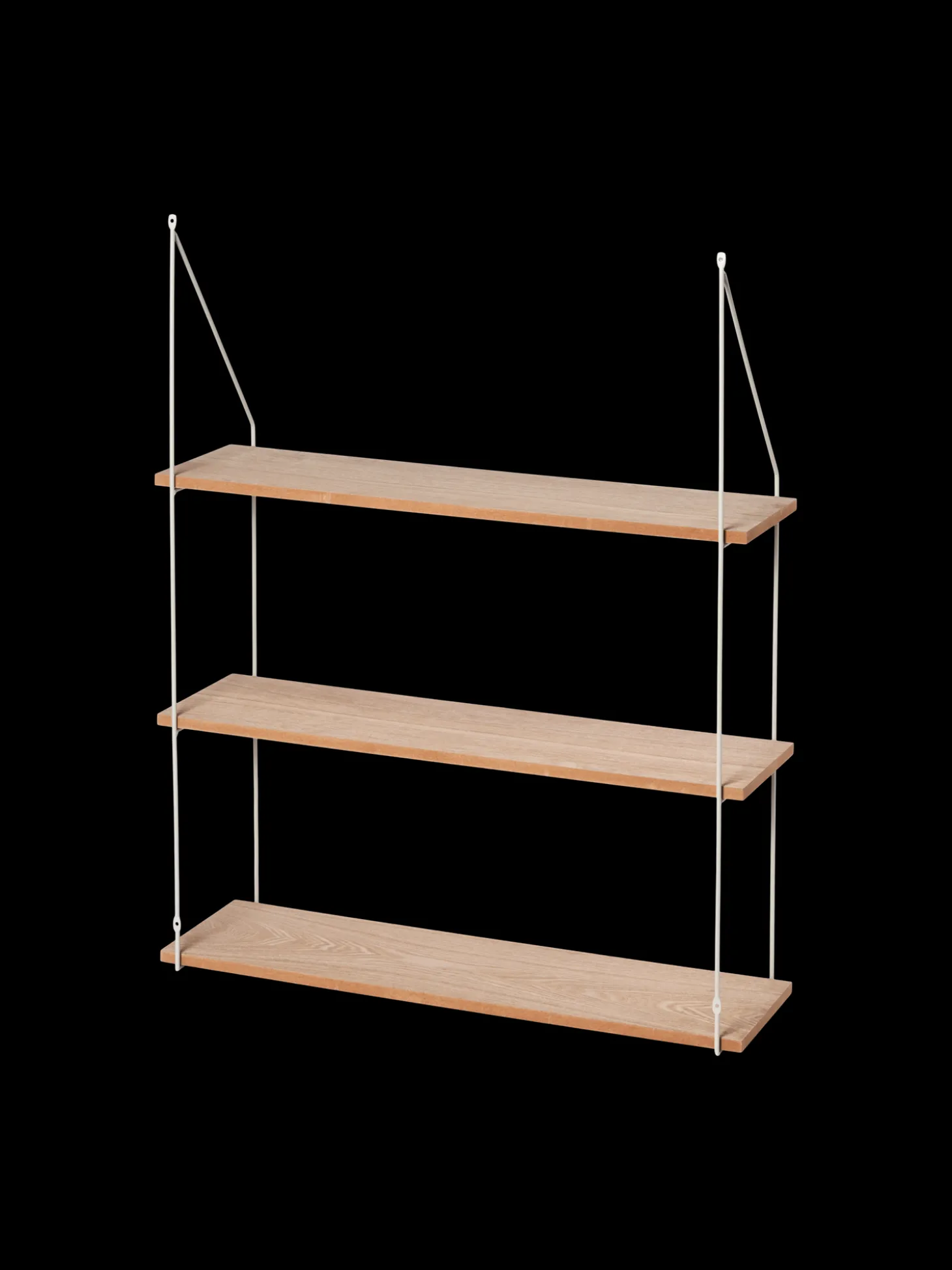 Søstrenes væghylde er lavet af FSC®-certificeret MDF og fyrretræsfiner samt jern. Den måler 65 x 20 x 81,5 cm og har 3 lag.