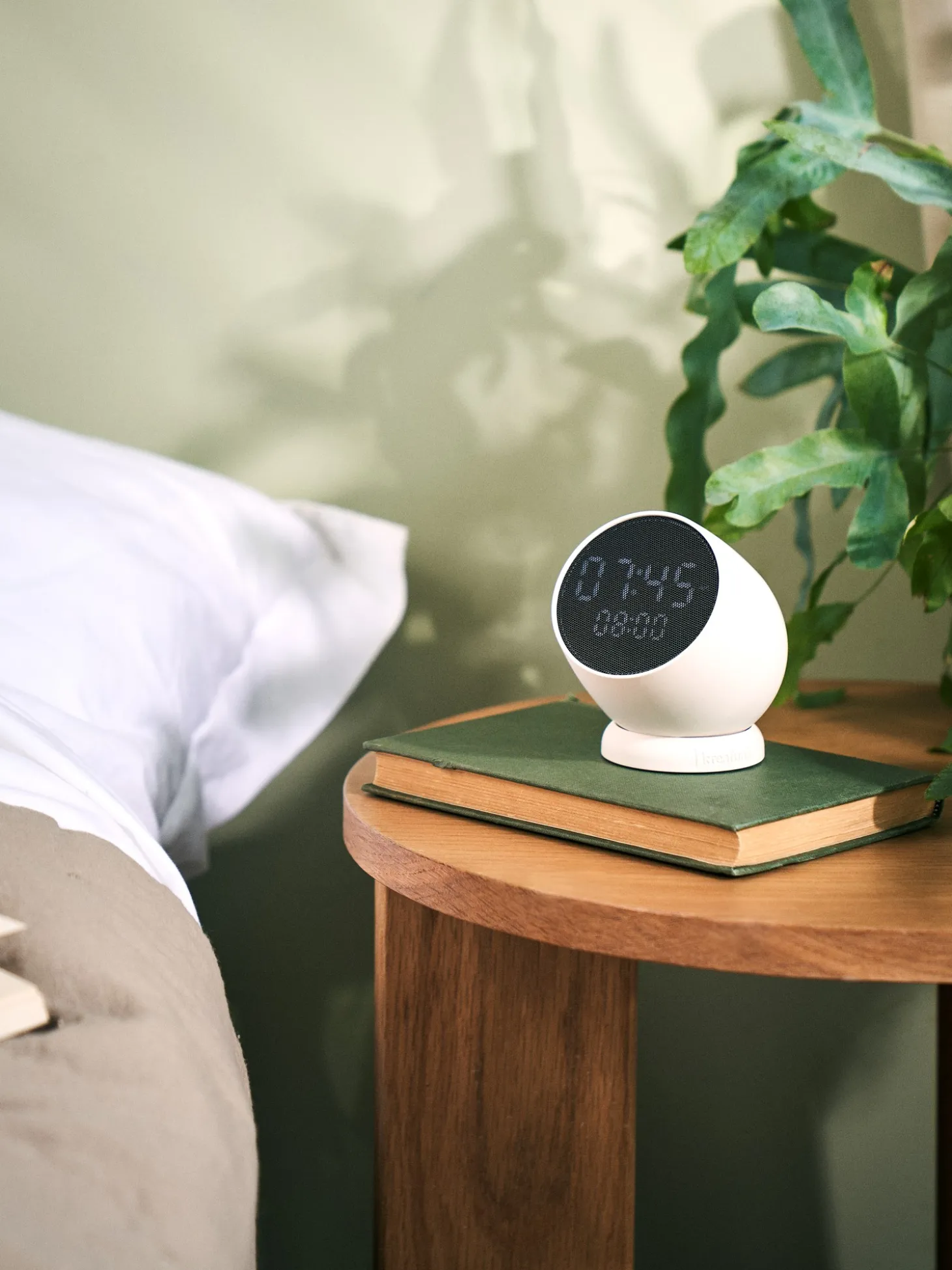 Dette vækkeur fra det danske mærke Kreafunk har et stilfuldt og intuitivt design og er drejeligt i bunden for at give mulighed for nem omplacering. Vækkeuret er lavet af ABS-plast samt metal og silikone.Sluk alarmen om morgenen med et enkelt tryk på en knap, eller vend den blot om for at udsætte den. Vækkeuret fungerer også trådløst med en fuld opladning på 1 til 2 timer og en driftstid på op til 30 dage.